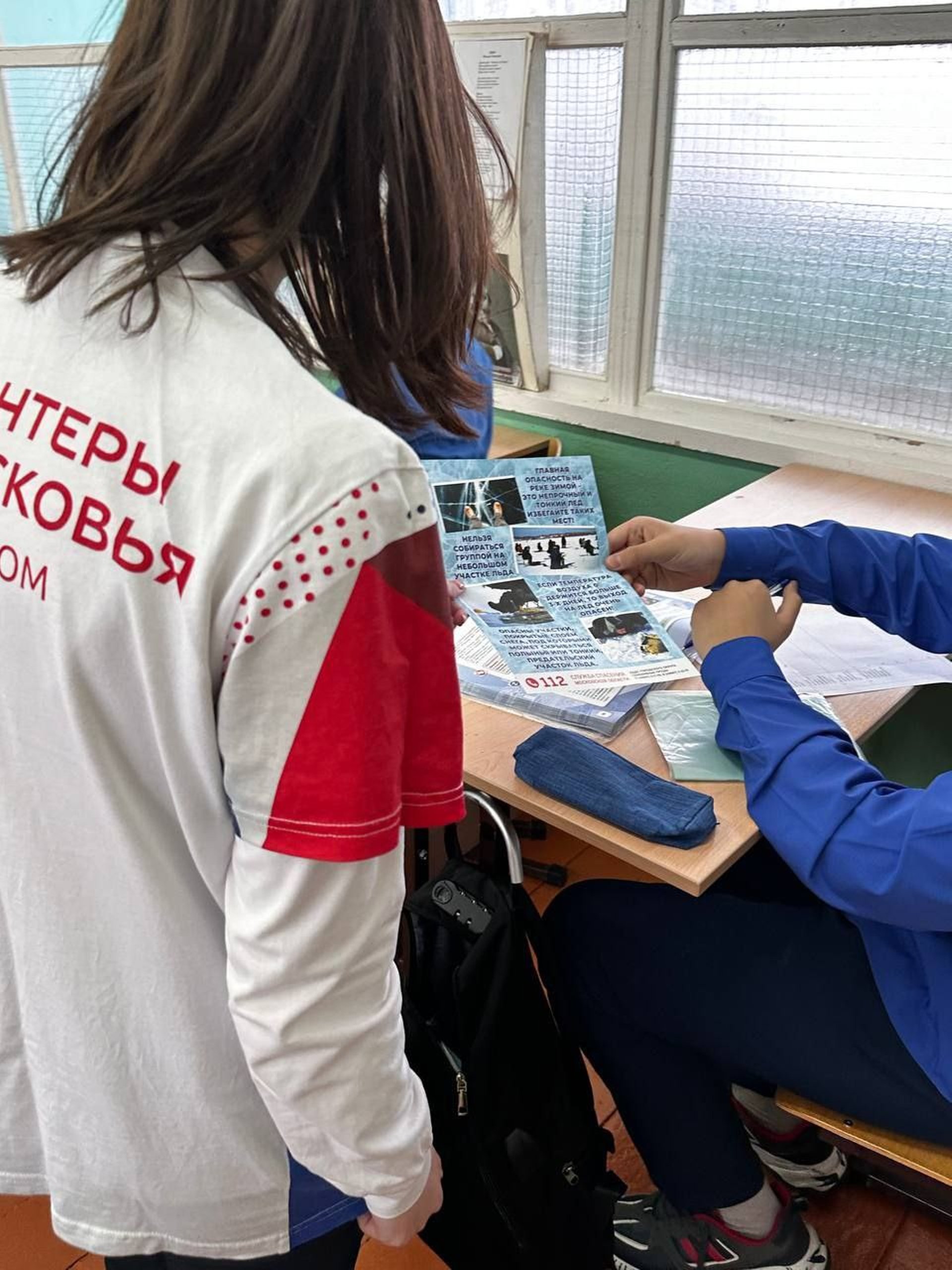 Волонтеры раздали листовки учащимся МБОУ "Совхозная СОШ" об опасности нахождения на льду в зимнее время года