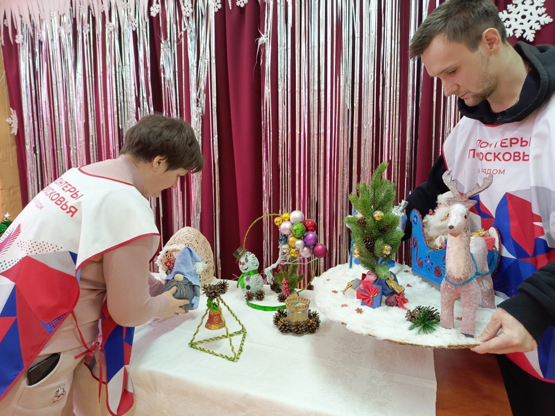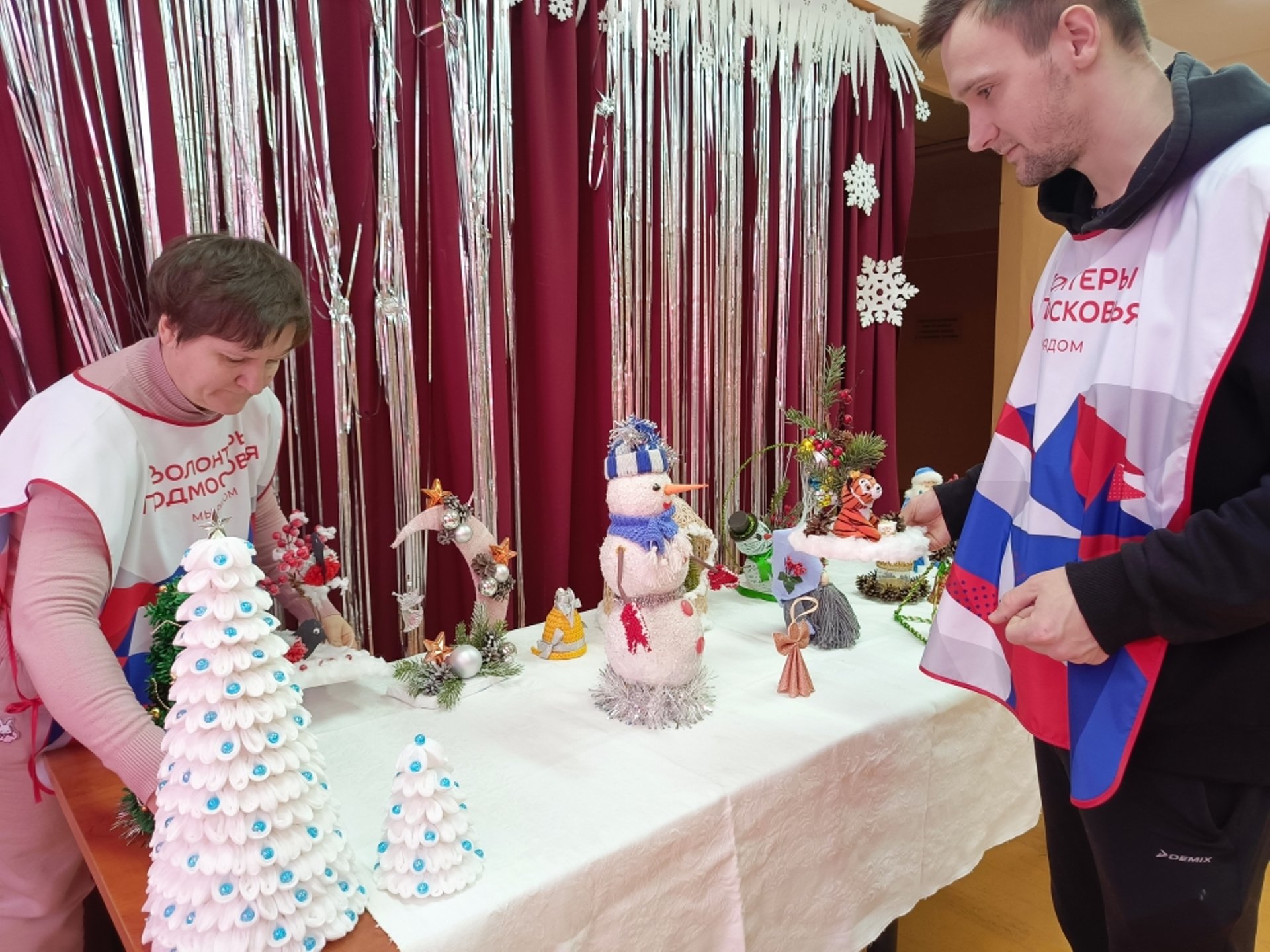 Волонтёры помогают в подготовке и проведении, "Выставки детский работ"