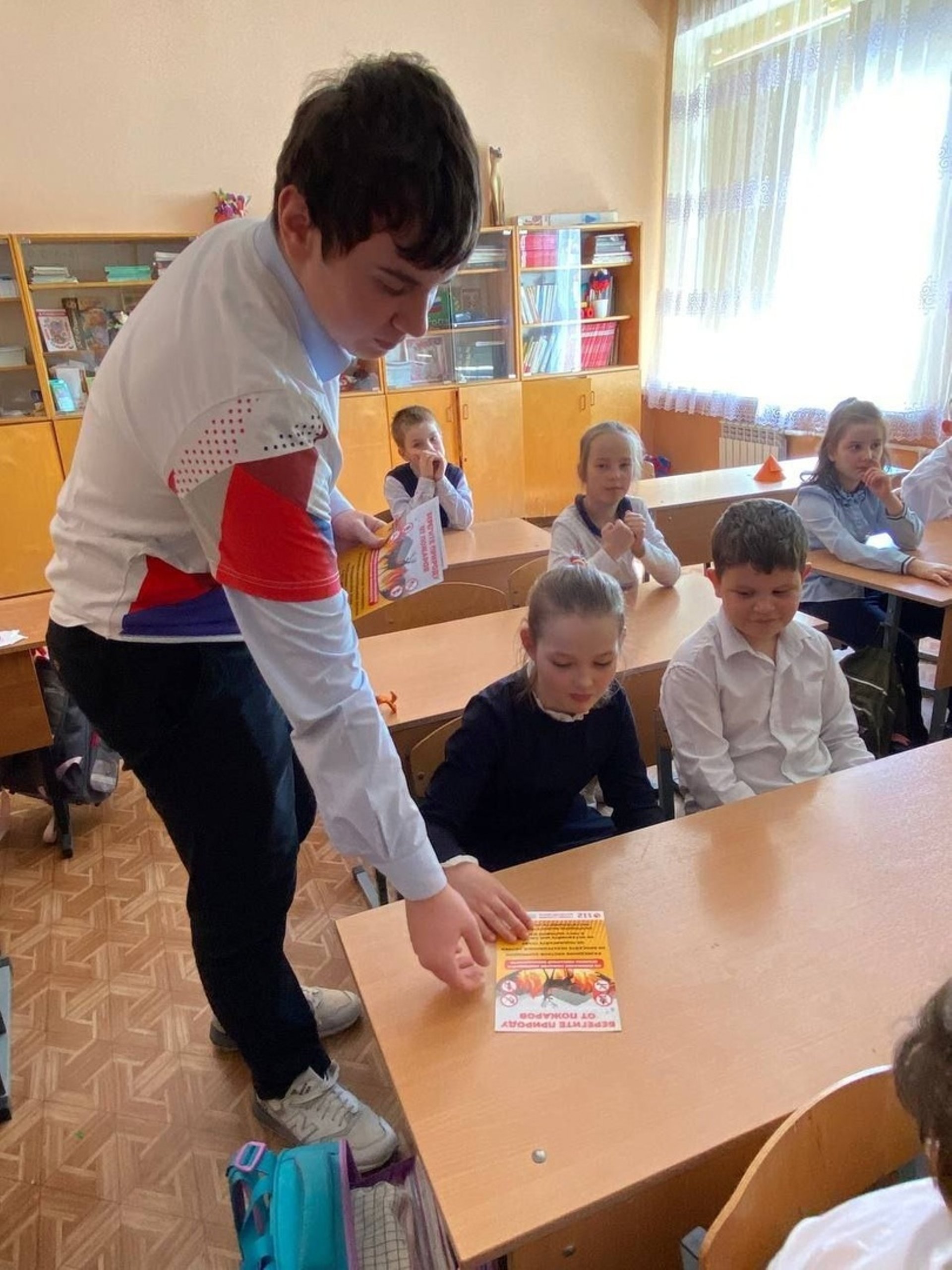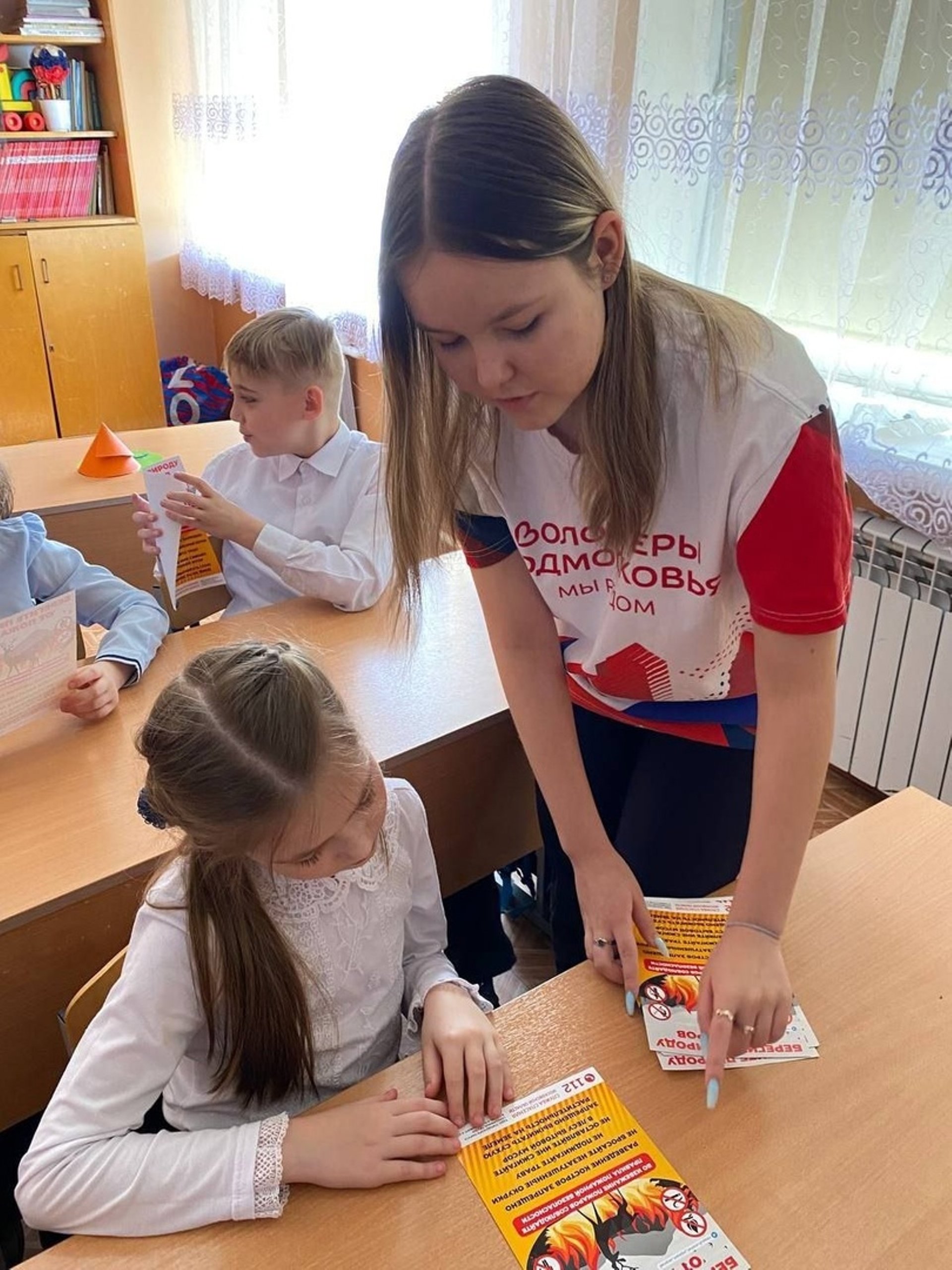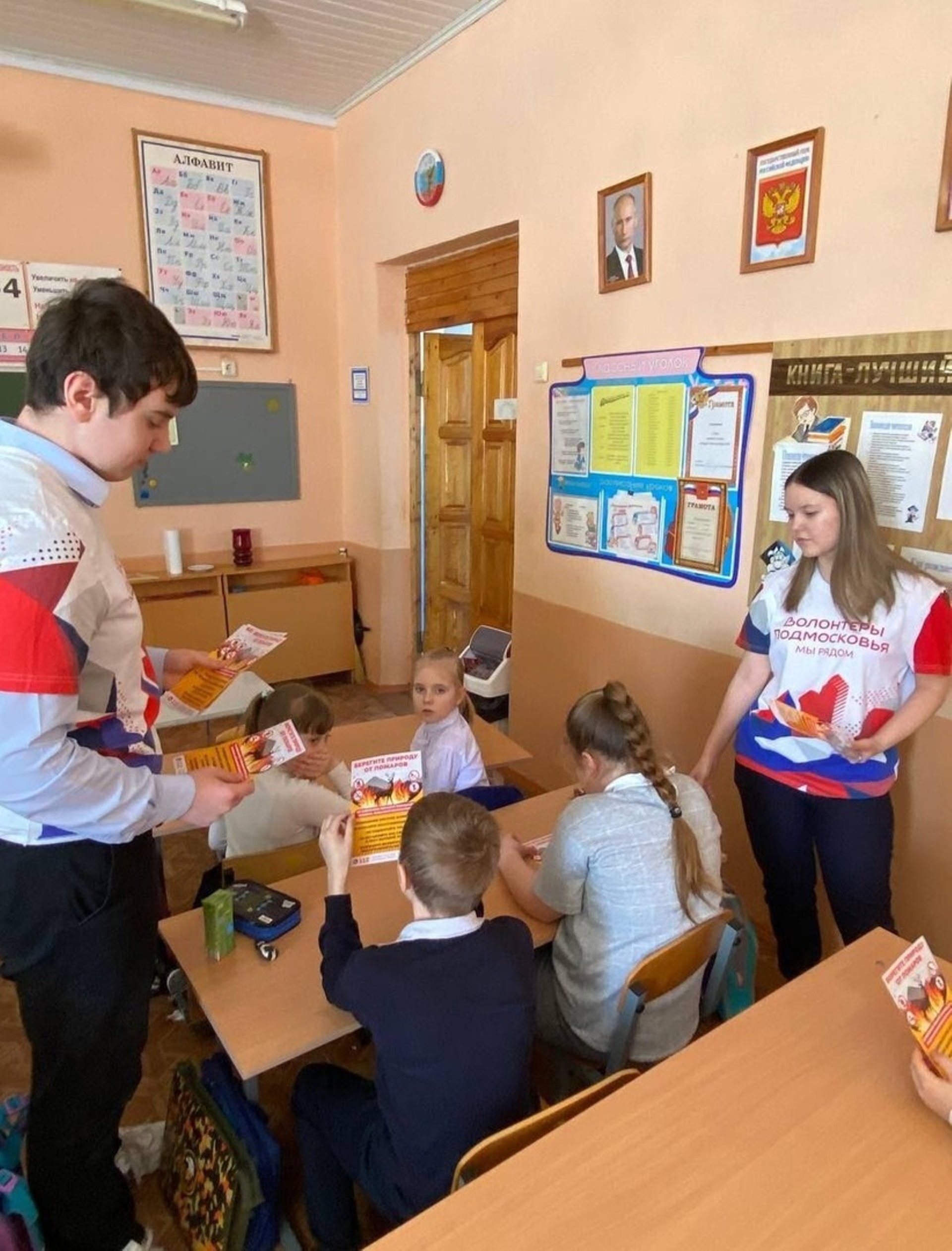 Волонтеры городского округа Серебряные Пруды провели профилактическую акцию "Берегите природу от пожаров!" в МБОУ "Совхозная СОШ" с раздачей информационных листовок обучающимся.