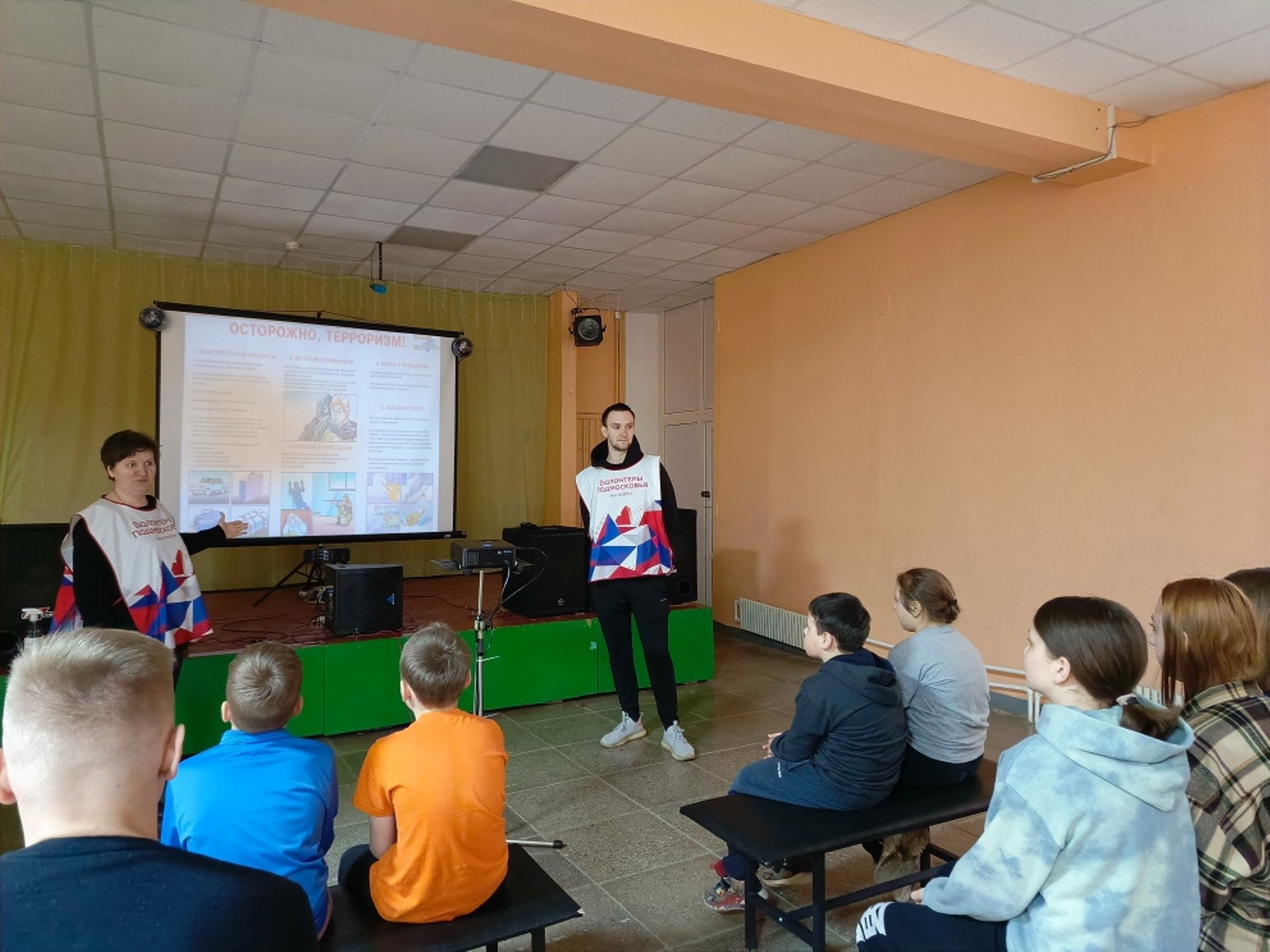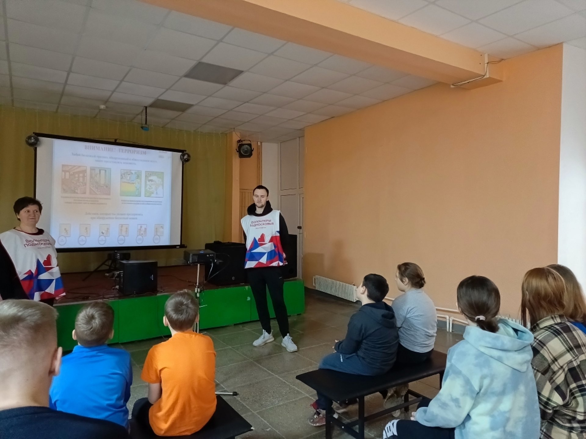 Волонтёры информируют детей и разъясняют, что такое терроризм и экстремизм, раздают буклеты на эту тему.