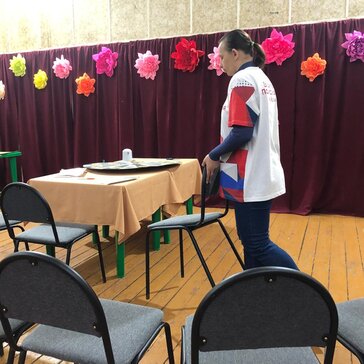 Волонтеры украшают зал, подготавливают инвентарь для интеллектуальной игры.