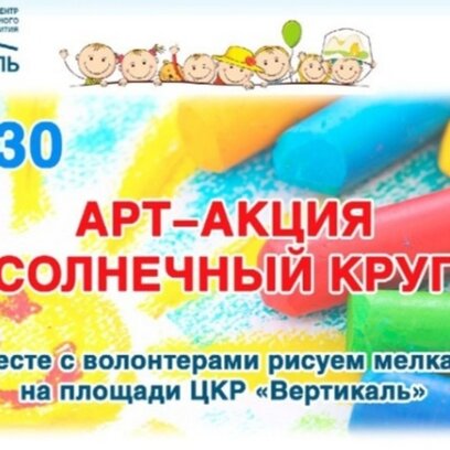 Во время акции, посвящённой Международному Дню Защиты Детей, вместе с активистами Движения Первых и участниками Волонтерской группы "Свежий ветер", дети и взрослые, в лучах солнечного круга, будут рисовать мелками всё то, что радует детей в мирной жизни