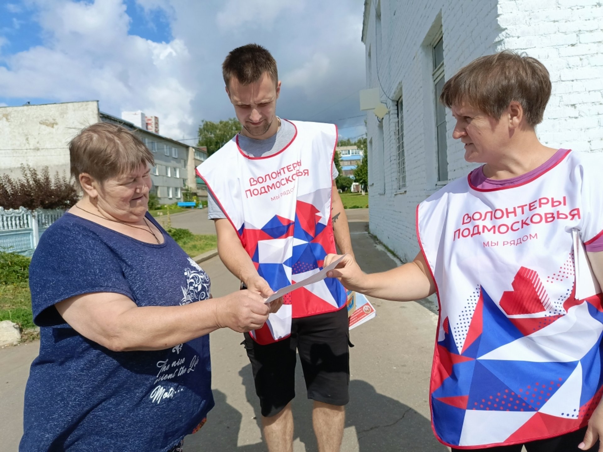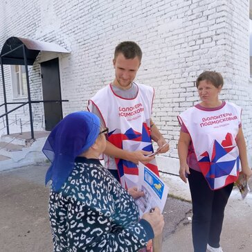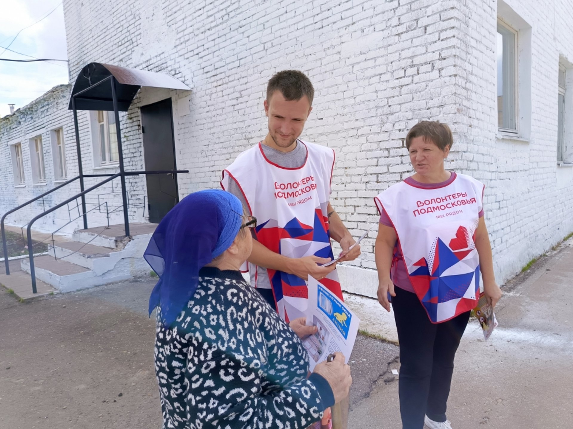 Волонтёры проводят беседу с жителями села и раздают памятки.