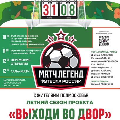 11:00 – футбольный мастер-класс с легендами футбола.