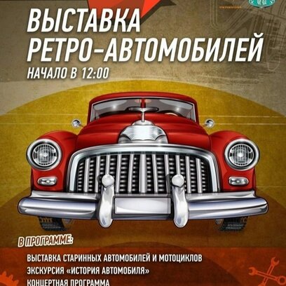 В программе: выставка старинных автомобилей и мотоциклов, экскурсия "История автомобиля*, конкурсы и концертная программа.