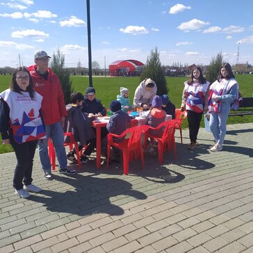 Помощь в проведении детской-игровой программы, раздача георгиевских ленточек.