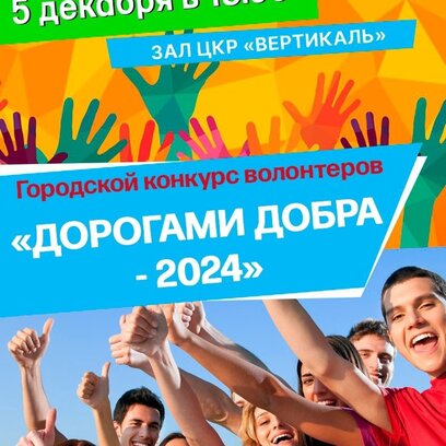 5 декабря с 18.00 в зале МБУК Пущинский ЦКР "Вертикаль" пройдёт цкркмония подведения итогов конкурса "Дорогами добра - 2024!" Участники Волонтёрской группы "Свежий ветер" и активисты Движения Перввх МБУК Пущинский ЦКР "Вертикаль" участвуют в конкурсной программе, выступают и участвуют в качестве ассистентов организаторов фестиваля.