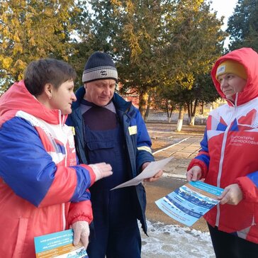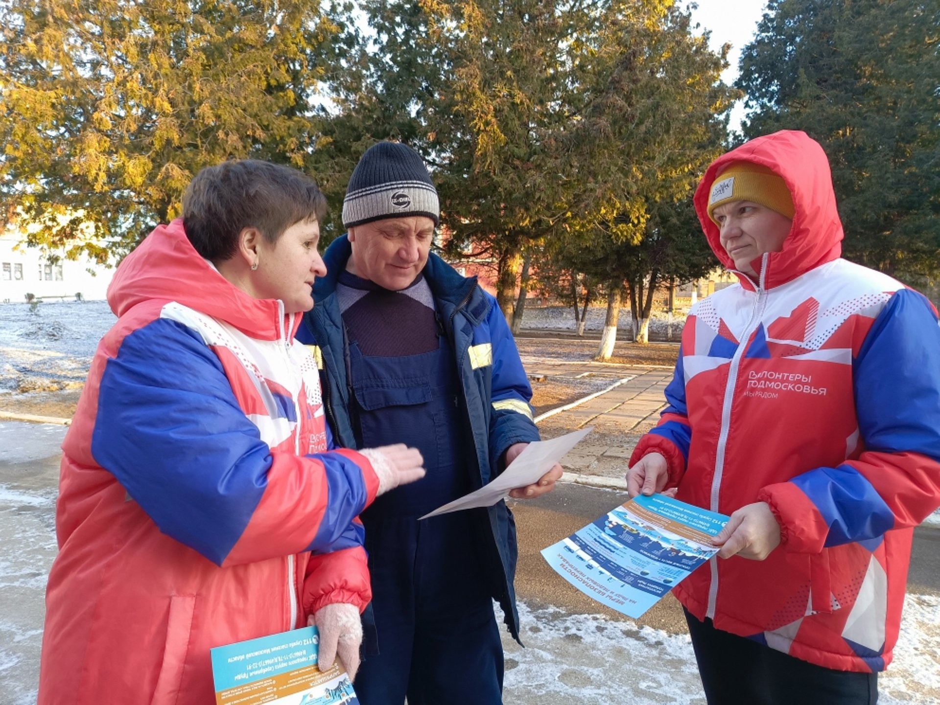 Волонтёры раздают памятки о правилах поведения и безопасности.