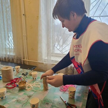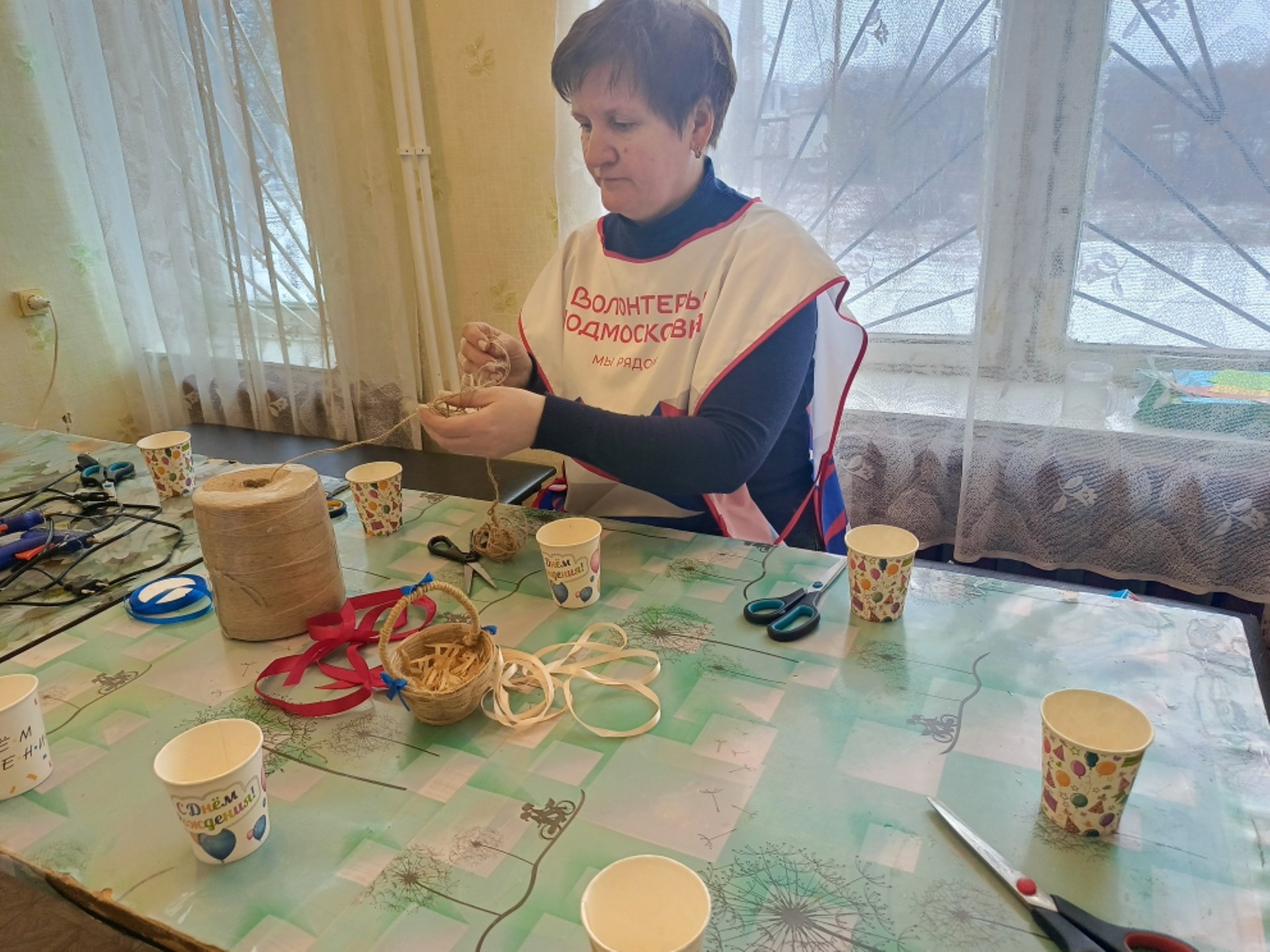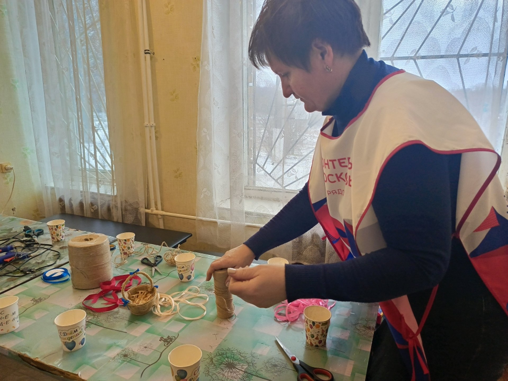 Волонтеры готовят необходимый материал и инструменты для работы участников мероприятия. По завершению мастер-класса, оформляют выставку работ.