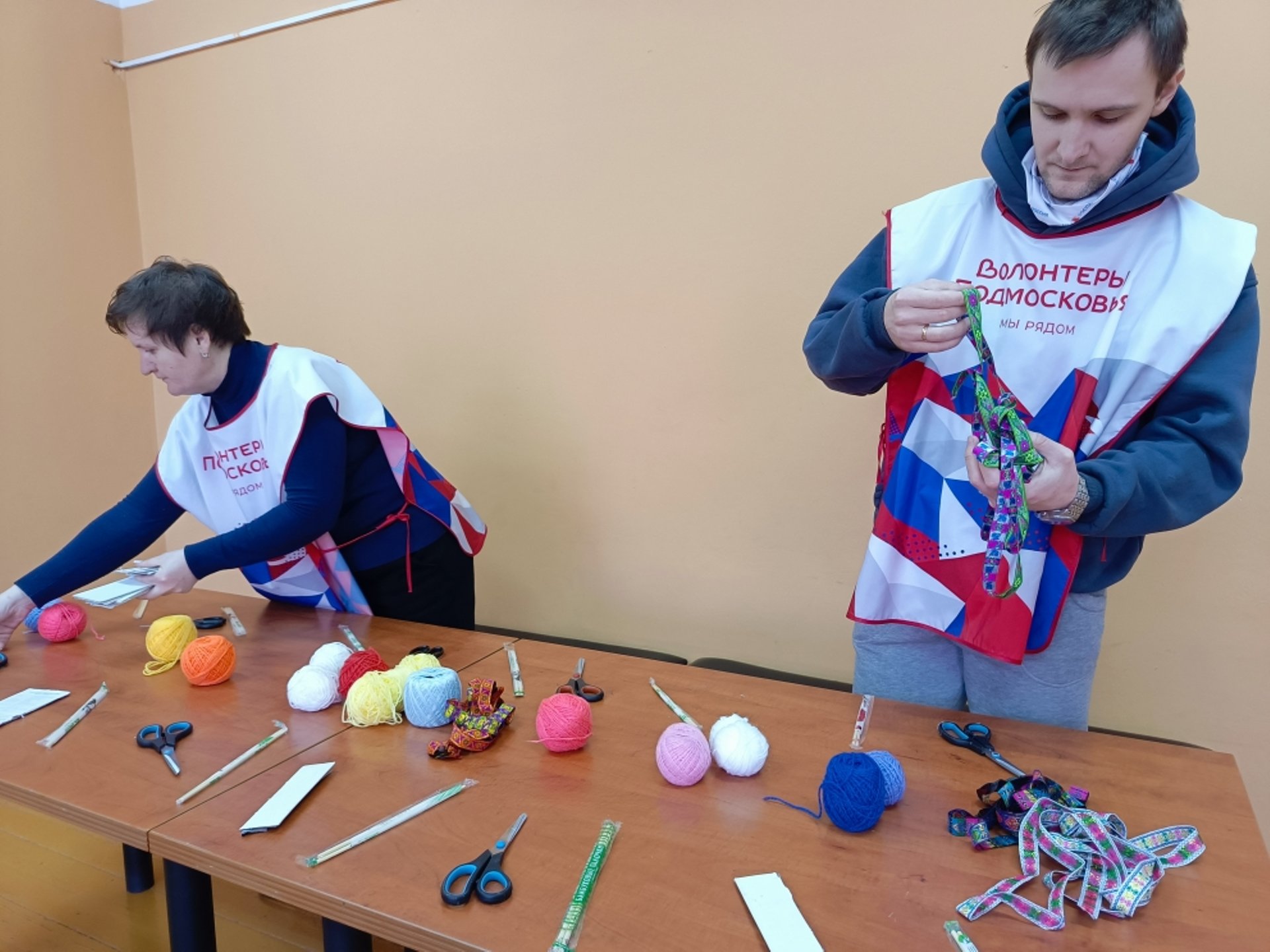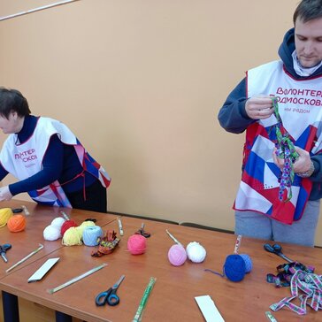 Волонтеры ведут подготовку к мероприятию: нарезают ткань на лоскутки, раскладывают украшение и инструменты для работы. Готовят беседу "Как на масленой неделе..."