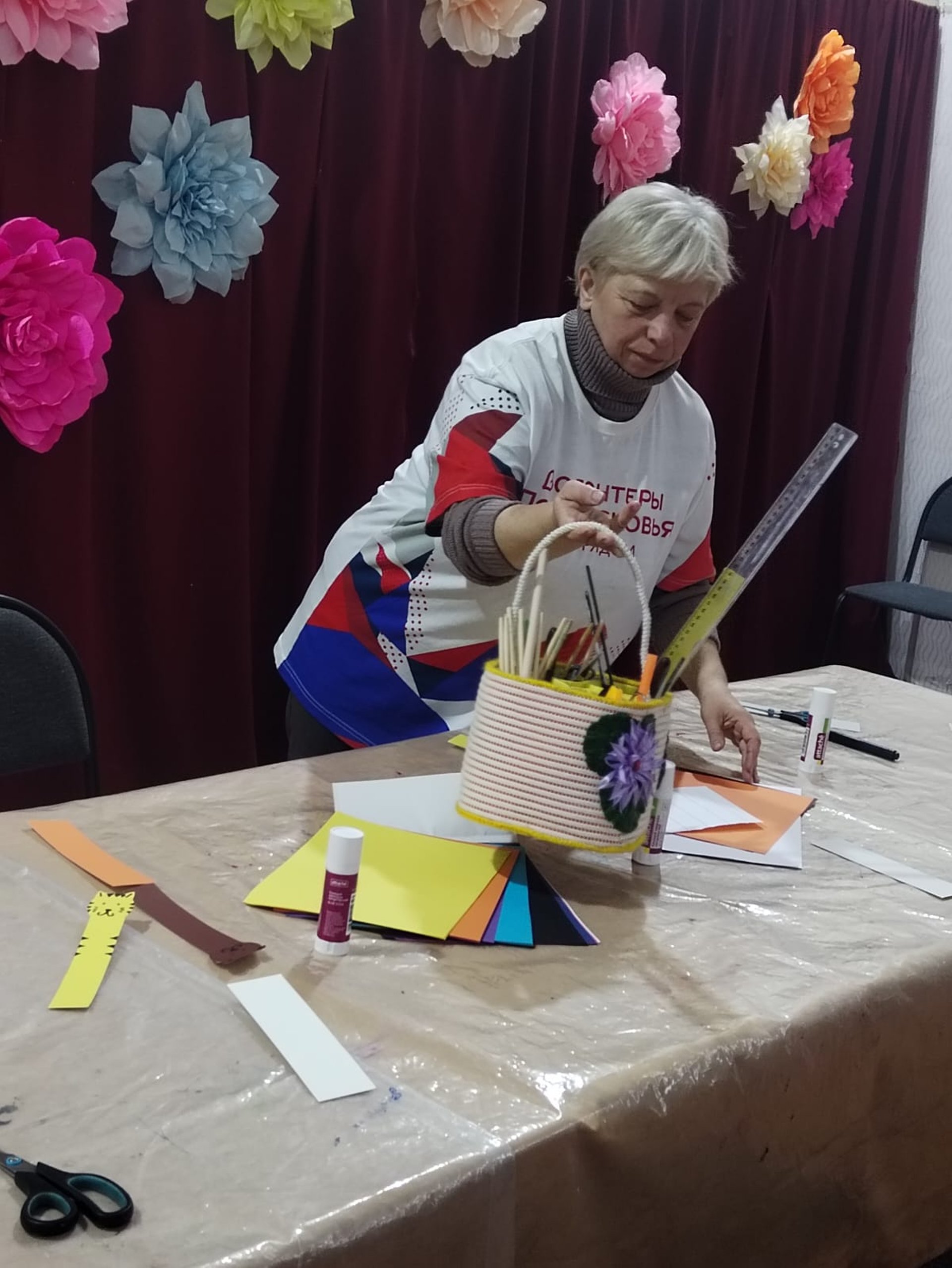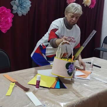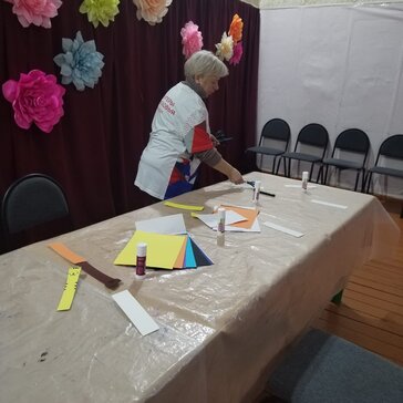 Волонтеры готовят весь необходимый материал для работы, раскладывают для каждого участника заготовки. Готовят викторину "Весенние цветы".