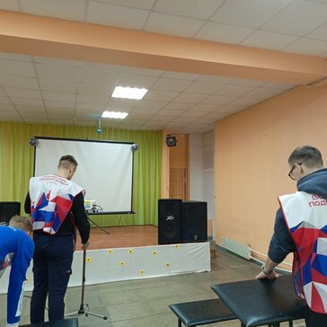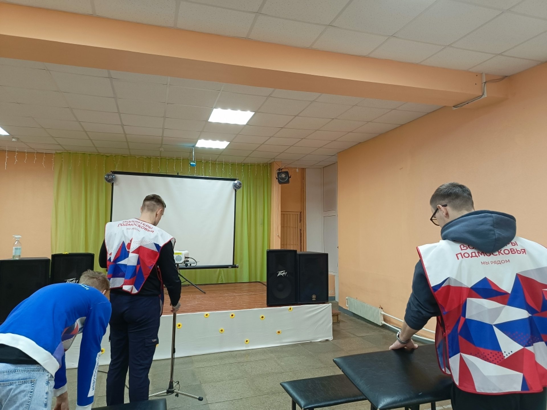 Волонтеры готовят презентацию, рассказ, устанавливают проектор и зрительные места для участников.