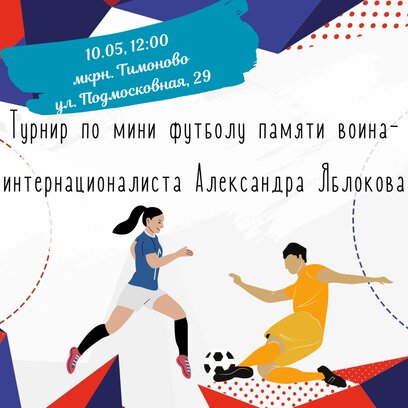 Уже 10 мая в Тимоново пройдёт турнир по мини-футболу, посвящённый памяти воина-интернационалиста Александра Яблокова.