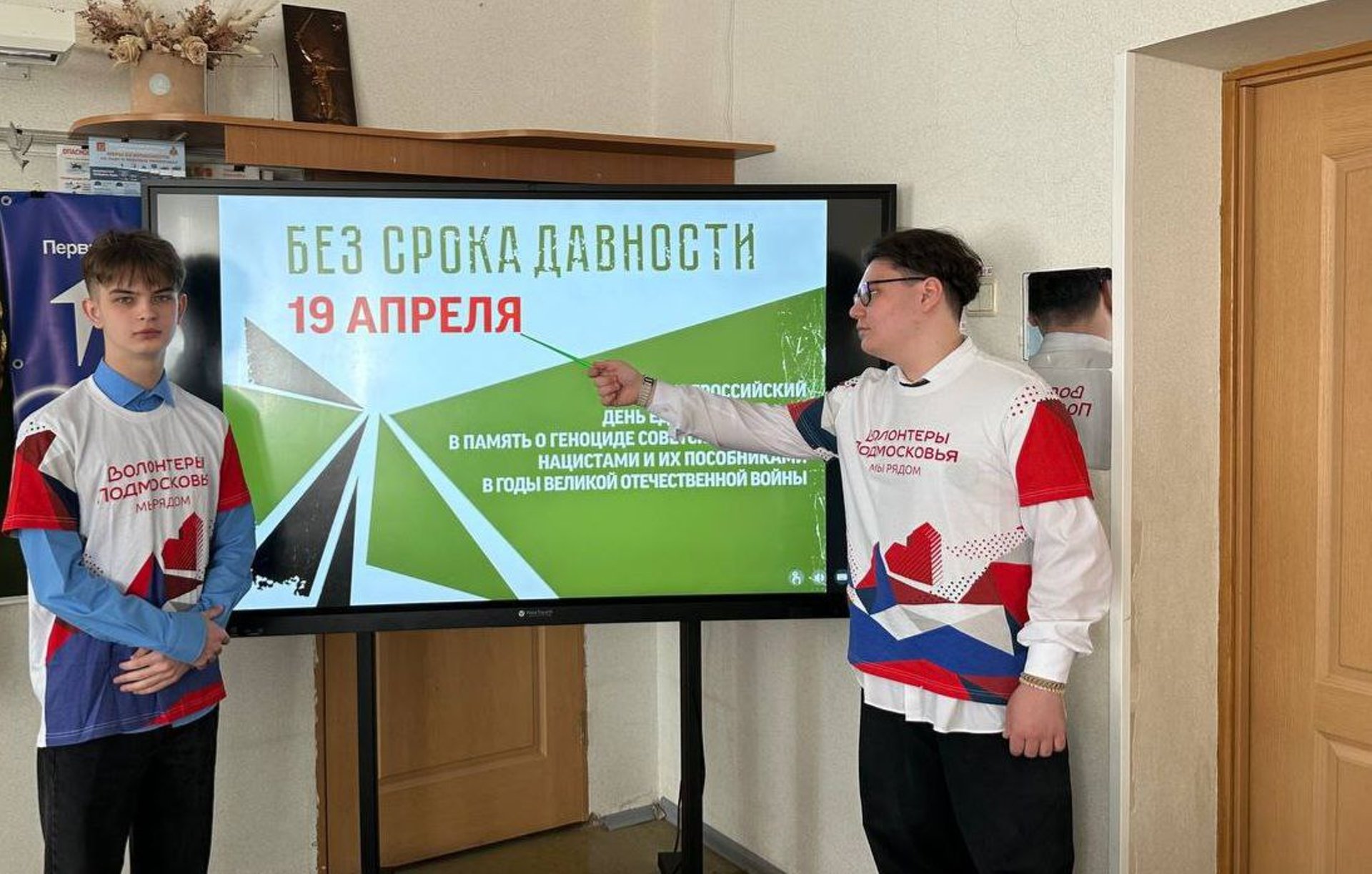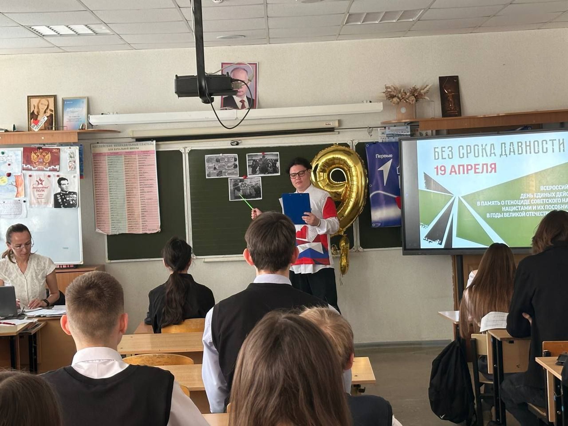 В преддверии Дня единых действий в память о геноциде советского народа нацистами и их пособниками в годы Великой Отечественной войны волонтёры муниципального округа Серебряные Пруды провели классный час под названием "Без срока давности" в МБОУ "Серебряно-Прудская СОШ имени Маршала В.И. Чуйкова ".