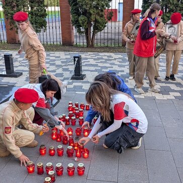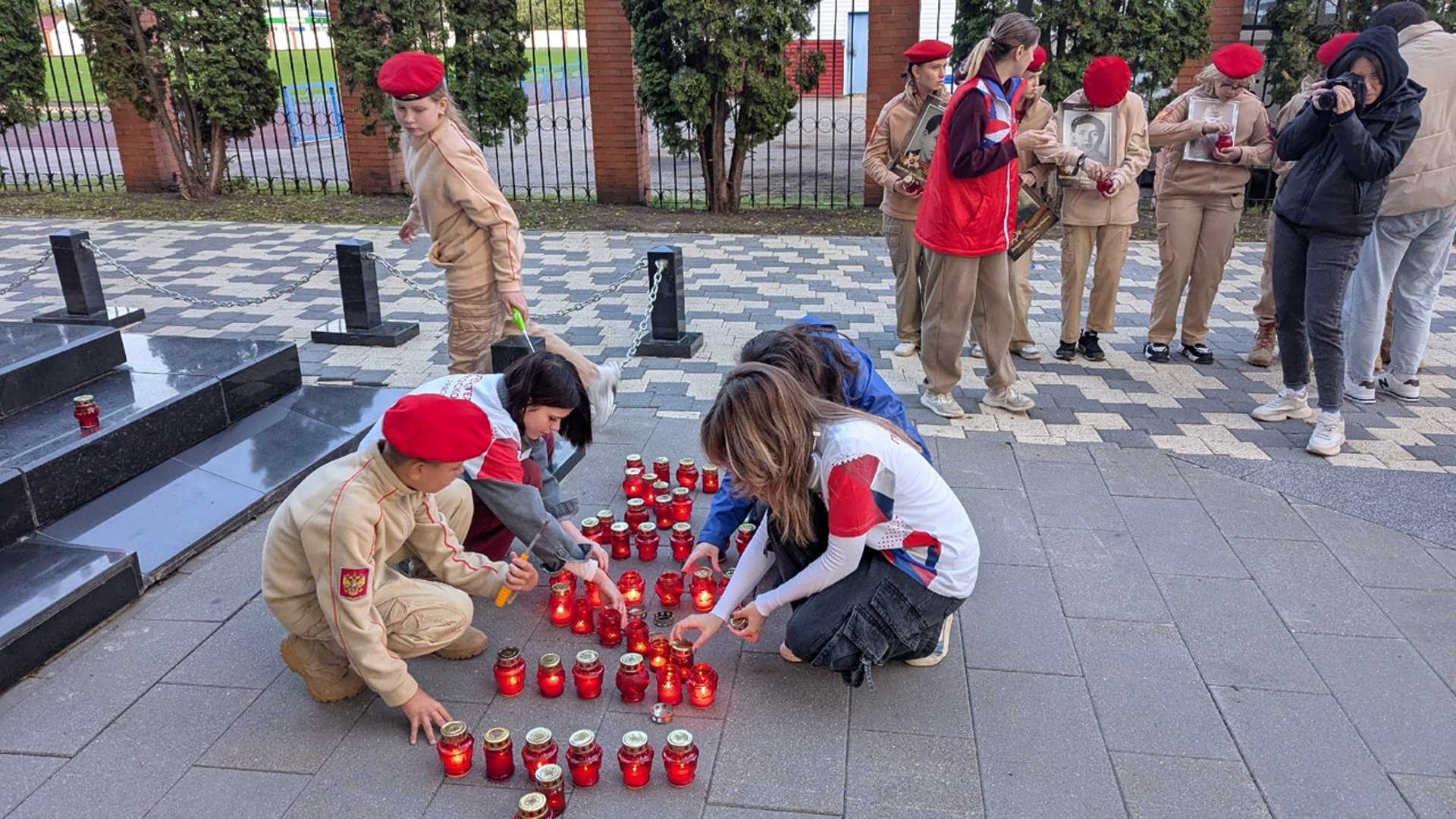 Добровольцы и все желающие собрались у Братской могилы, чтобы зажечь Свечи памяти, тем самым отдать дань уважения тем, кто погиб в годы войны с нацизмом.