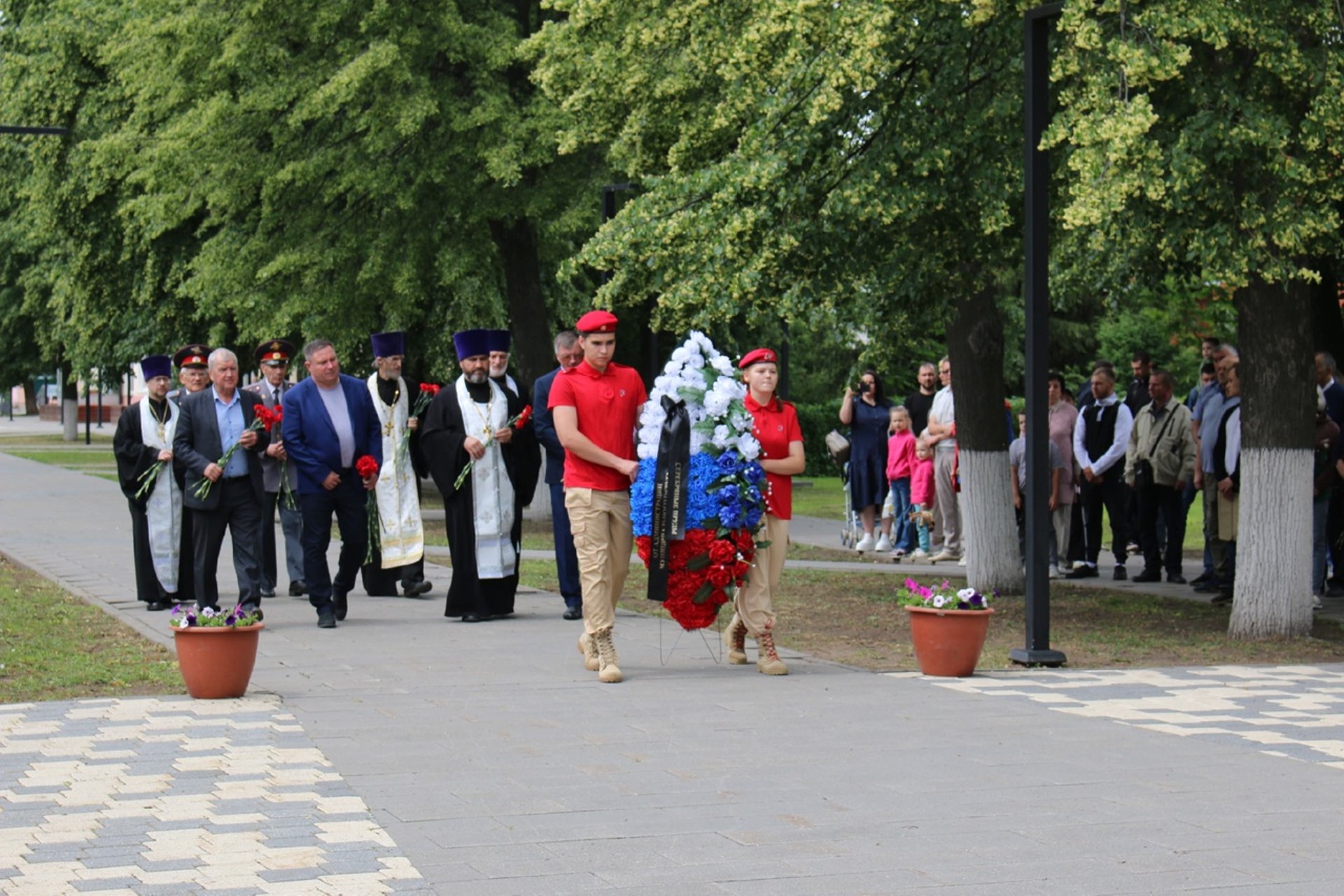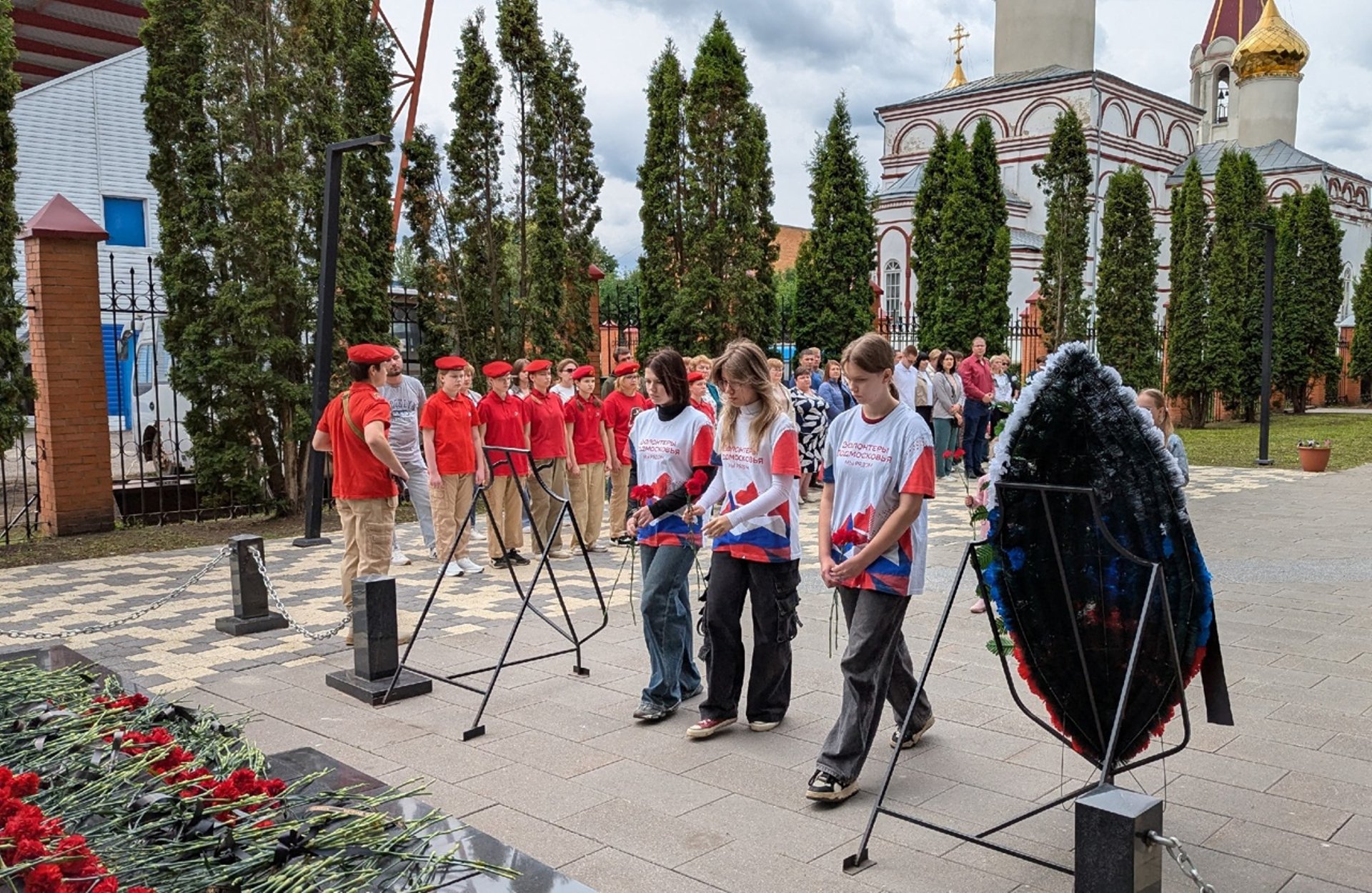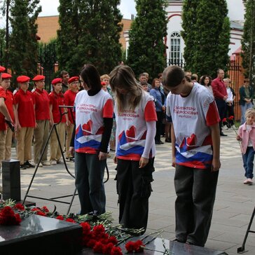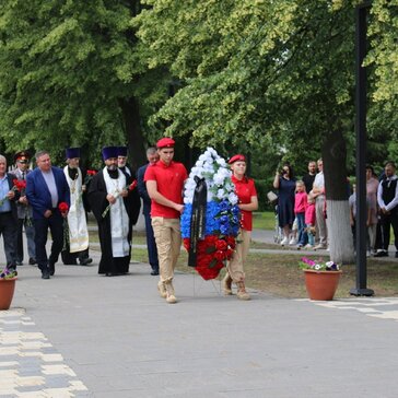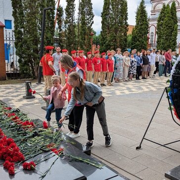Торжественная церемония возложения цветов и венков к Братской могиле с участием главы муниципального округа, участников СВО, представителей благочиния, лидеров общественного мнения, Юнармии, волонтеров, участников Движения Первых и жителей Серебряных Прудов.