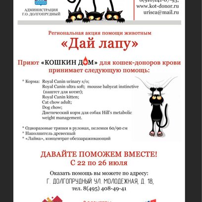 Регеональная акция помощи животных "Дай лапу"
