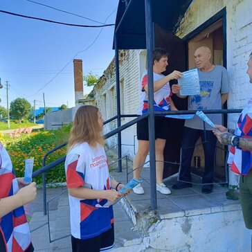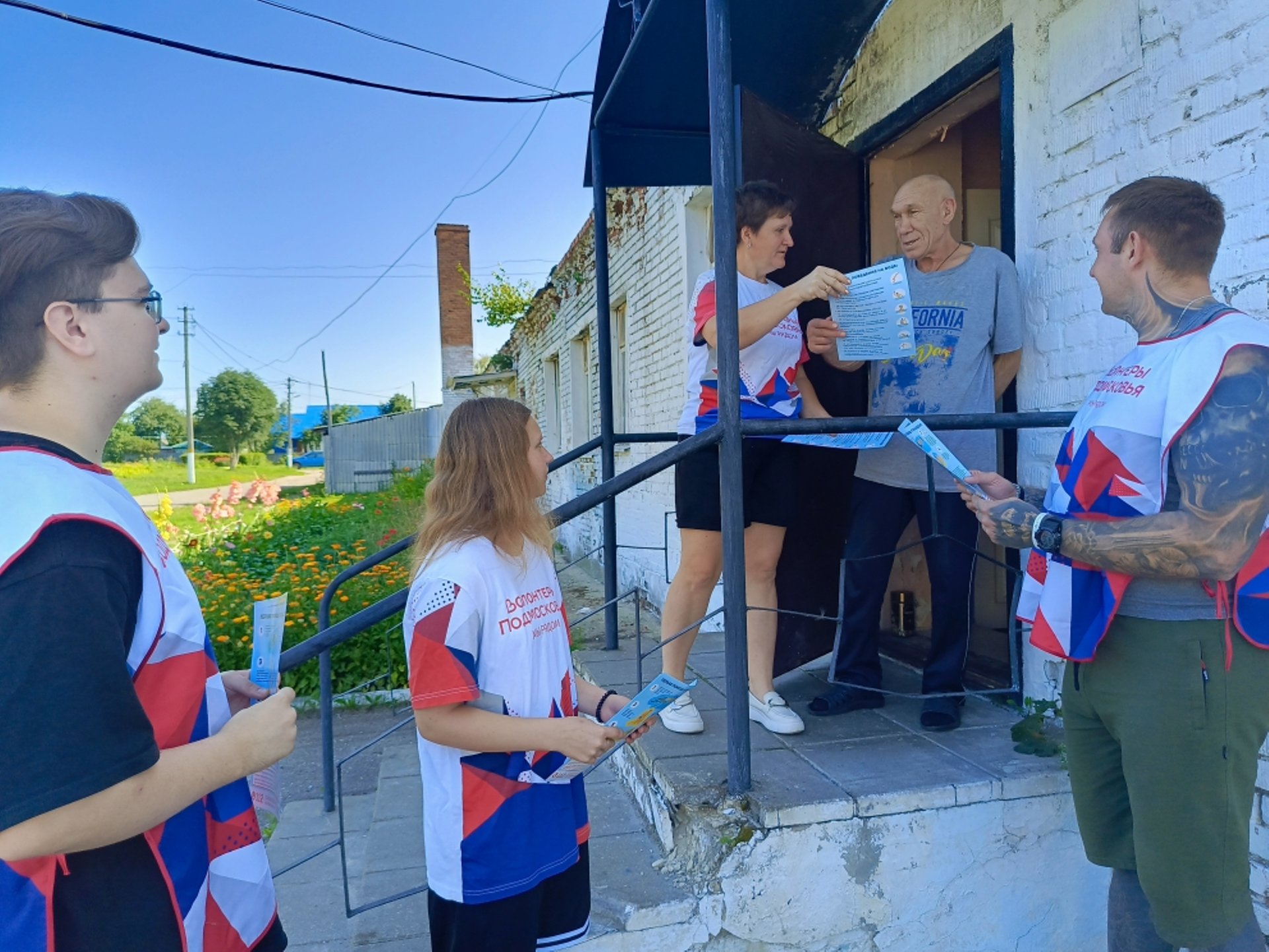 Волонтеры беседуют с жителями села Подхожее о первой помощи утопающему и раздают памятки на данную тему