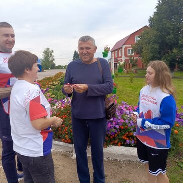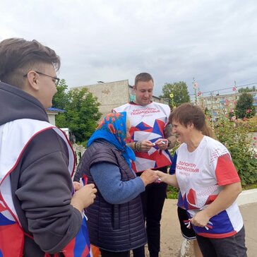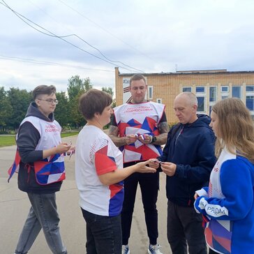 Волонтеры раздают ленточки в цветах триколора в честь Дня Государственного флага Российской Федерации
