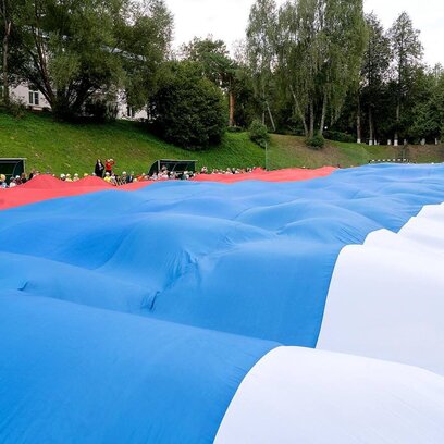 В честь Дня государственного флага волонтёры и дети развернут полотно триколор площадью 1000 кв. м.