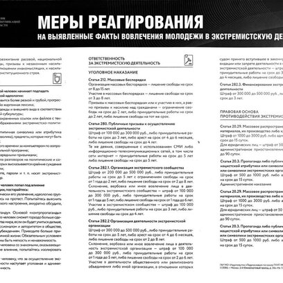 Меры реагирования на выявленные факты вовлечения молодежи в экстремисткую деятельность