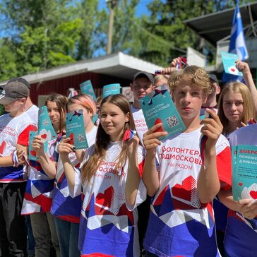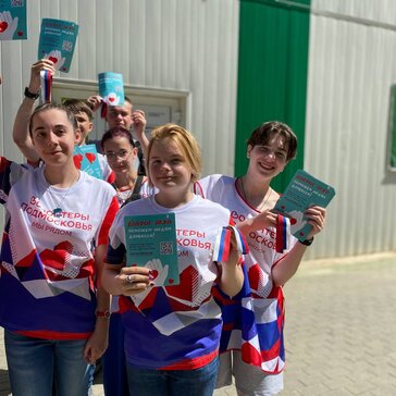 В предверии праздника "День России" волонтёры г.о. Кашира раздают жителям города ленточки с российским триколором, а также листовки с информацией о Волонтёрах Подмосковья.