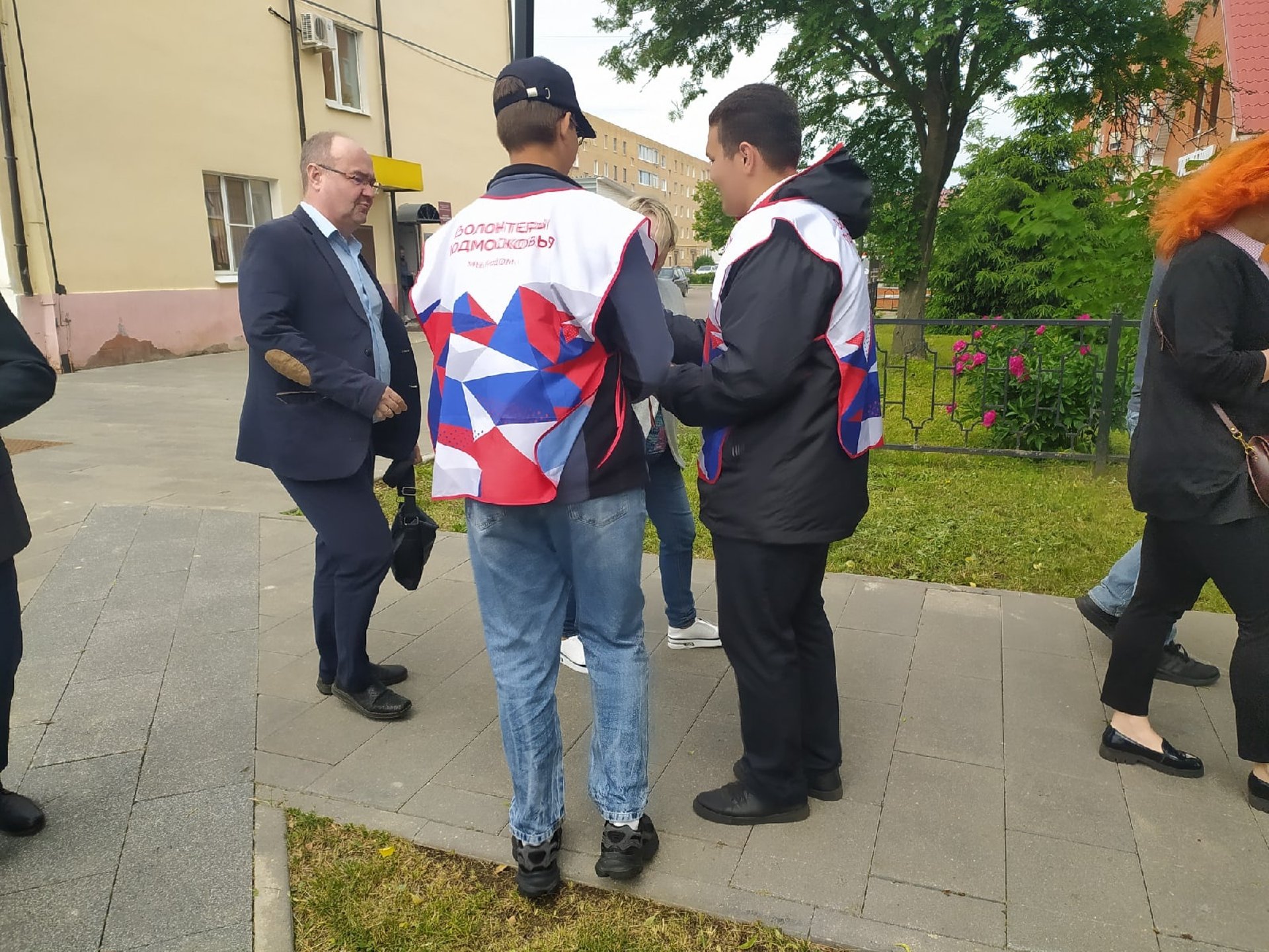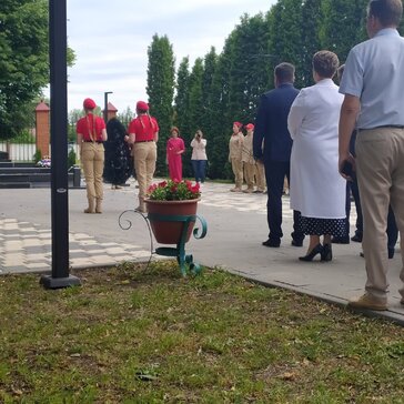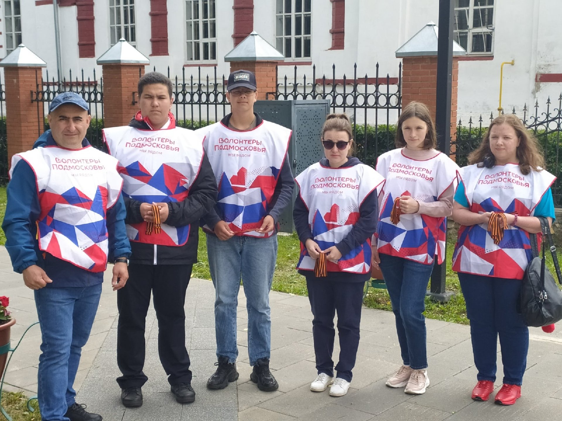 Возложение цветов и венков к Братской Могиле в Серебряных Прудах, воинам землякам погибшим в ВОВ. Волонтеры раздают цветы и участвуют в мероприятии.