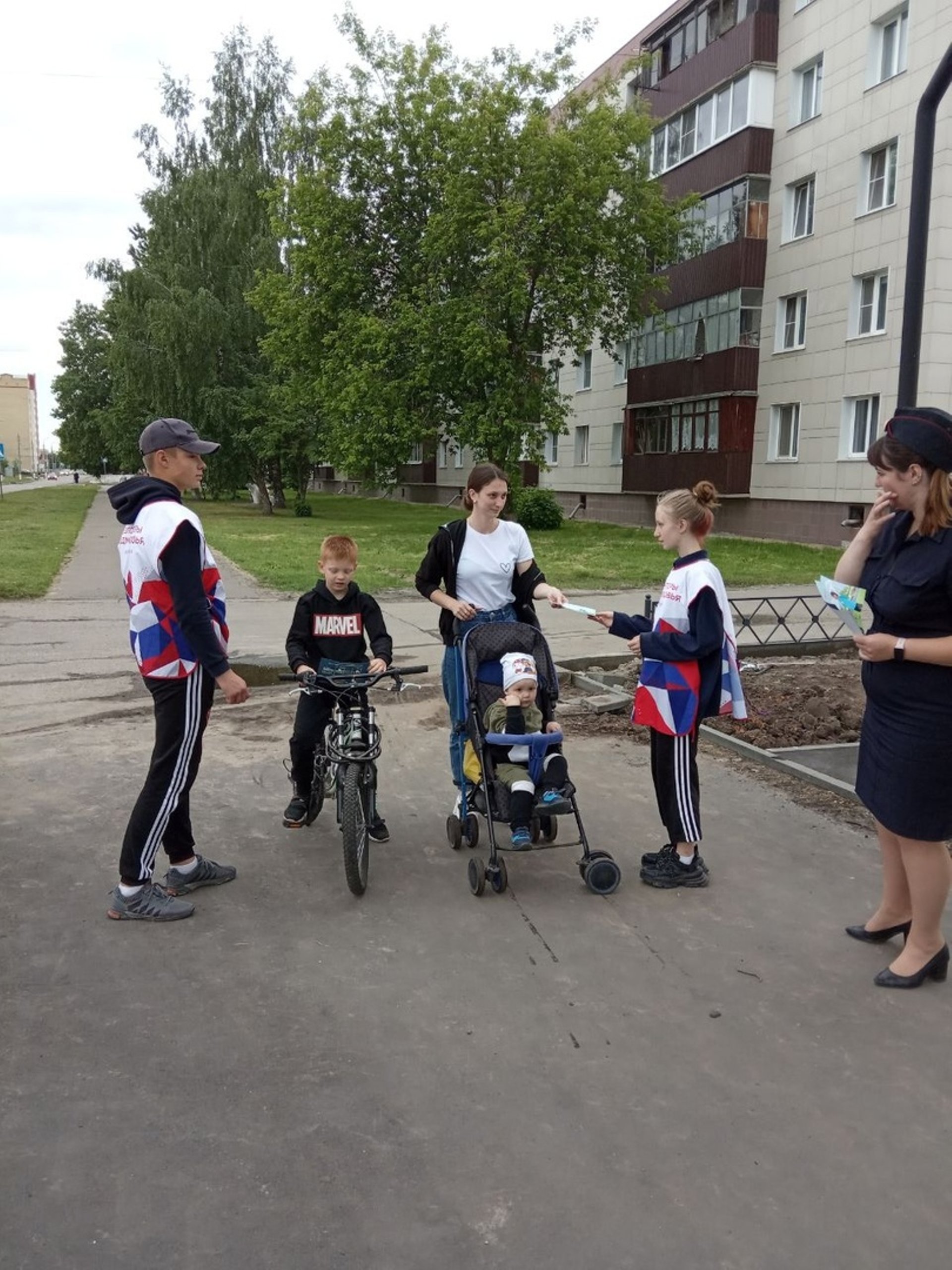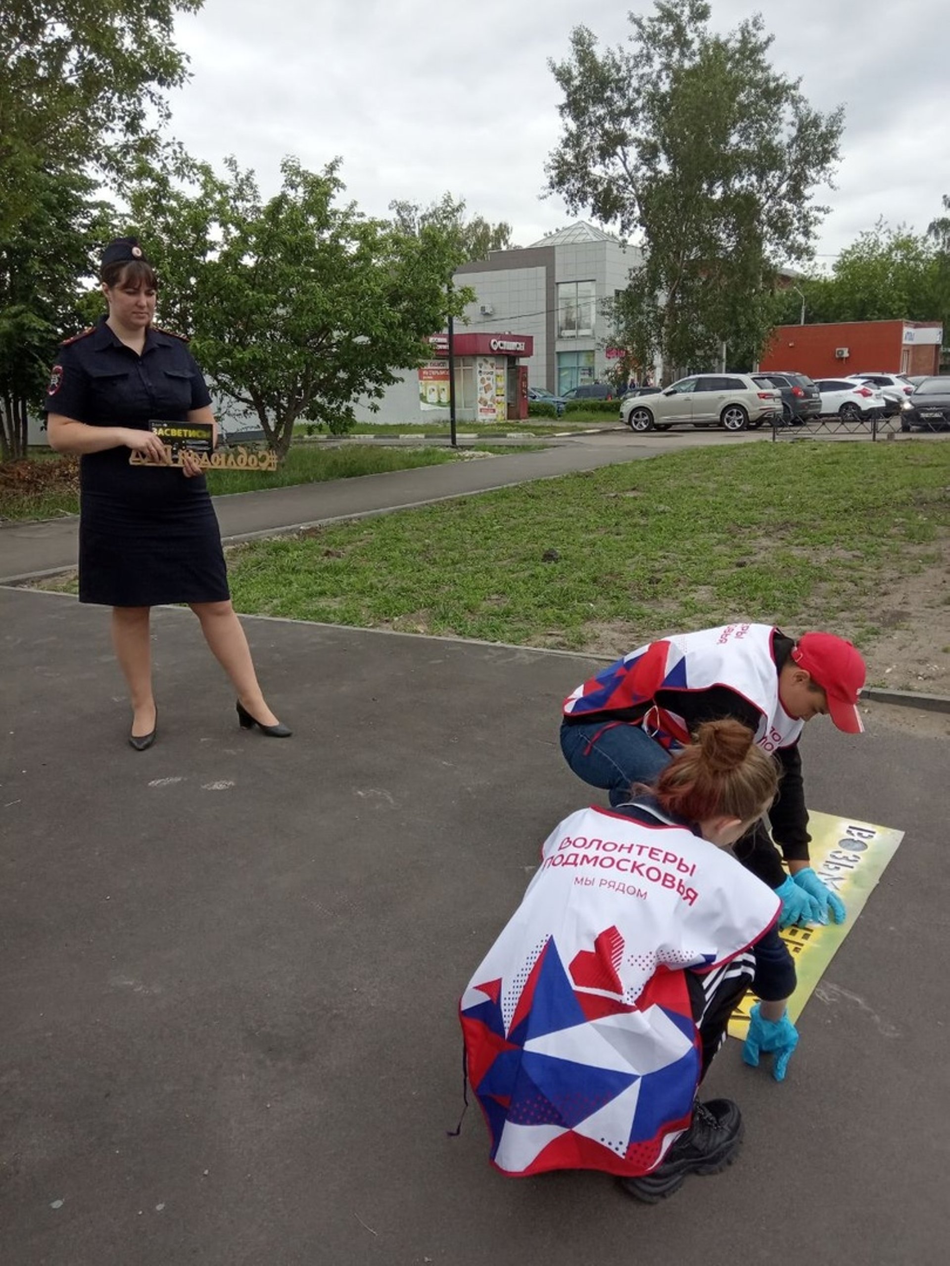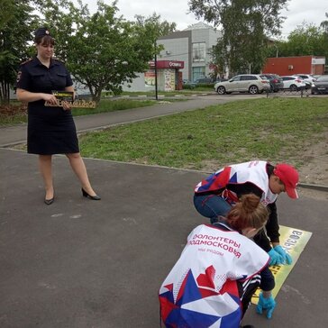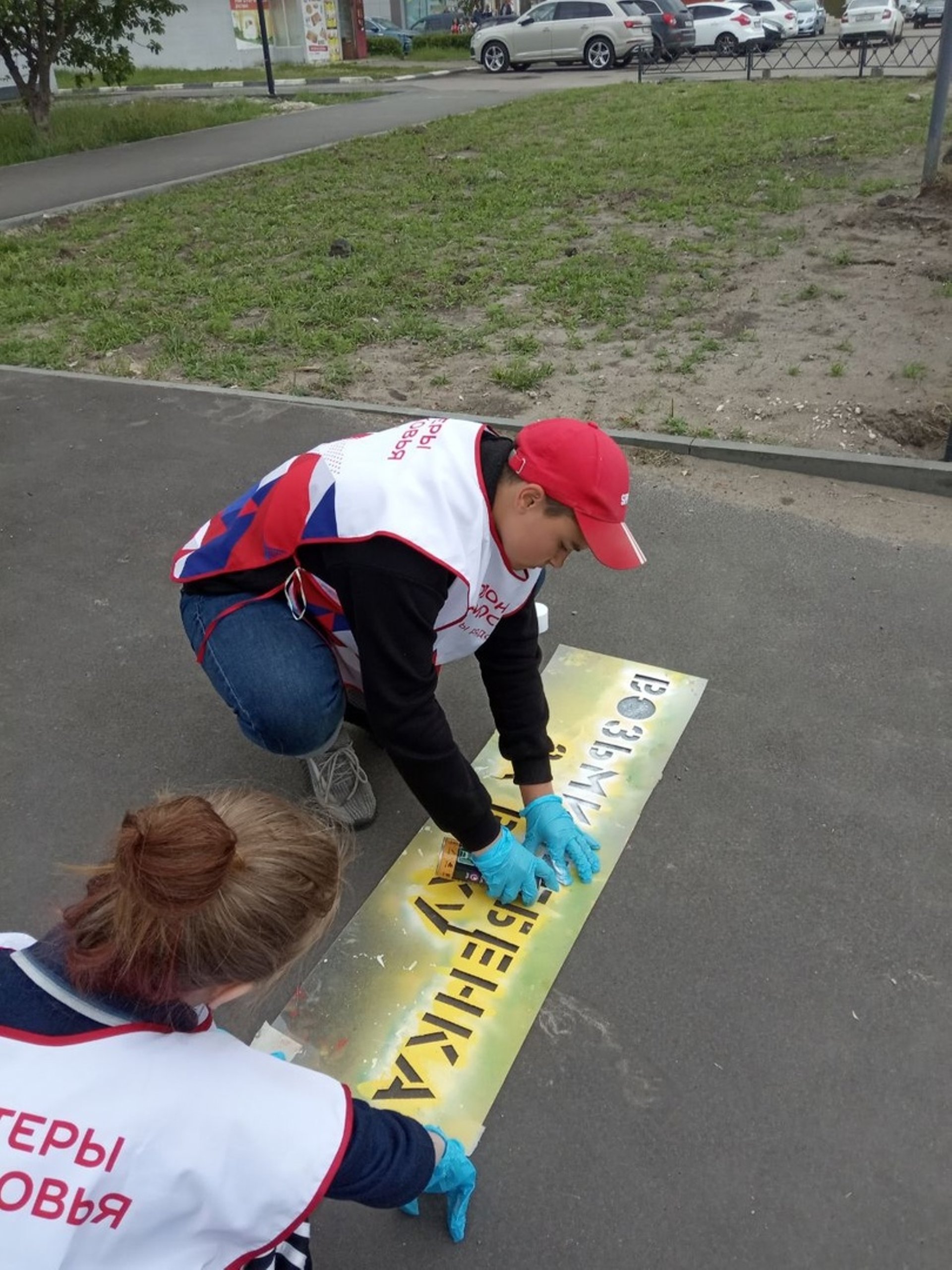 Волонтеры помогали наносить надписи на тротуары.