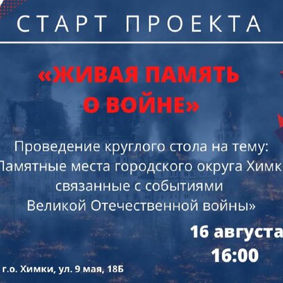 16 августа в 16:00 в Региональном ресурсном центре будет проведён круглый стол на тему: «Памятные места городского округа Химки, связанные с событиями Великой Отечественной войны».