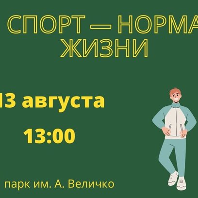 13 августа в 13:00 в парке им. А. Величко всвязи с празднованием Дня физкультурника состоится спортивно-массовый праздник "Спорт - норма жизни".