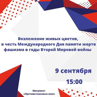 9 сентября у монумента «Противотанковые ежи» химкинские волонтеры и сотрудники МБУ «ХимСпас» возложили красные гвоздики в честь Международного Дня памяти жертв фашизма в годы Второй Мировой войны.