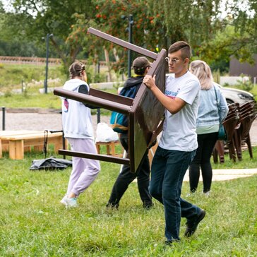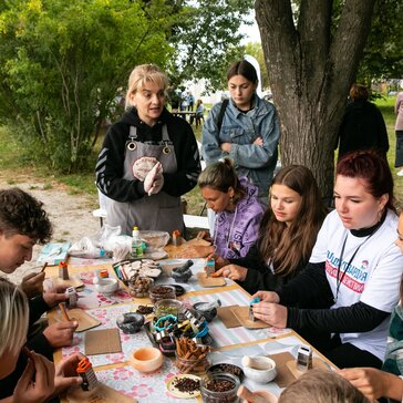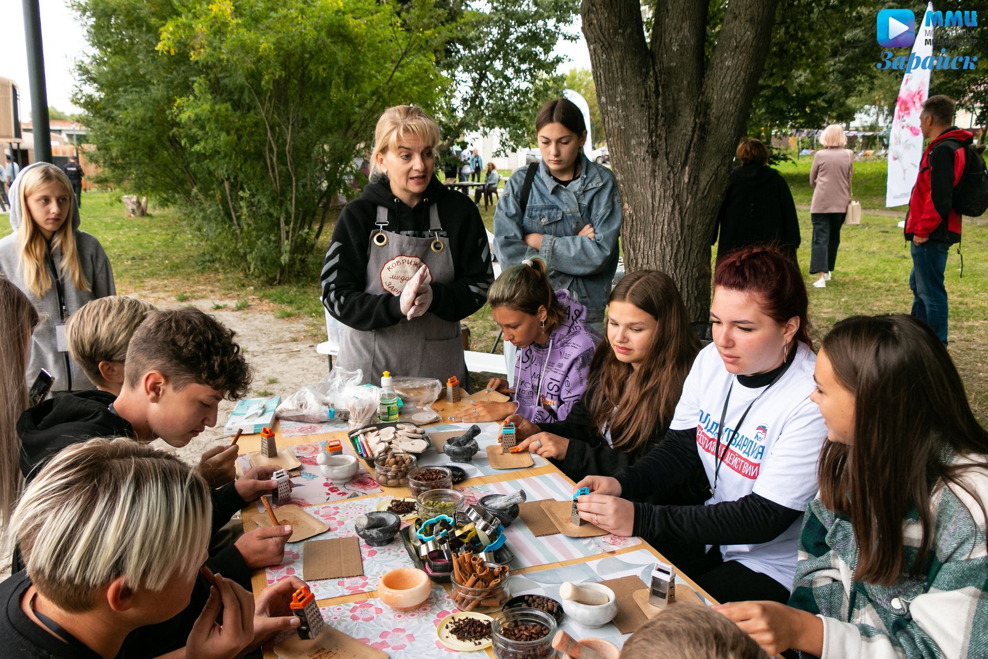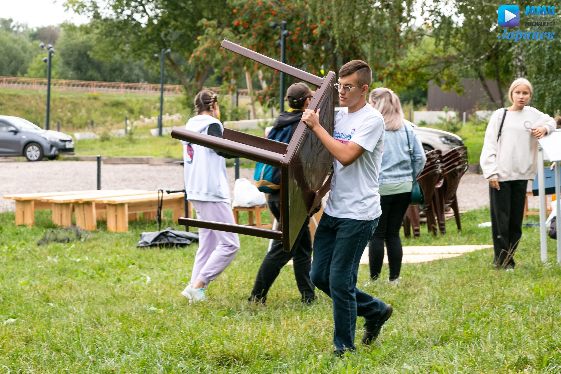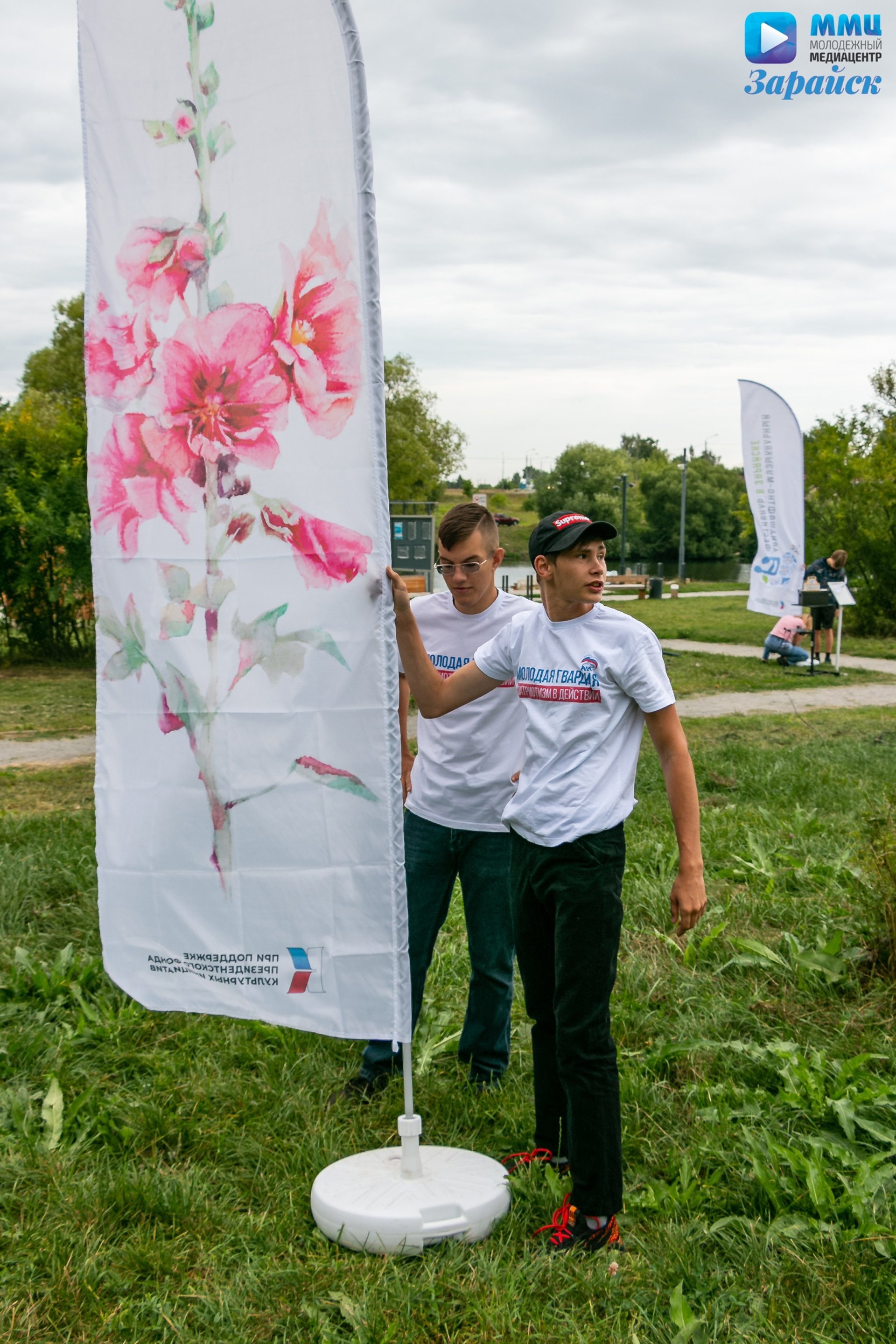 С самого утра ребята включились в подготовку площадки: парни таскали столы и стулья, устанавливали флаги. Девушки же развешивали фотографии, предназначенные для украшения зоны фотоконкурса. Ну а после старта мероприятия все дружно отправились на мастер-классы. Большинство выбрало приготовление зарайской коврижки, но кое-кто отважился и на пленэр.