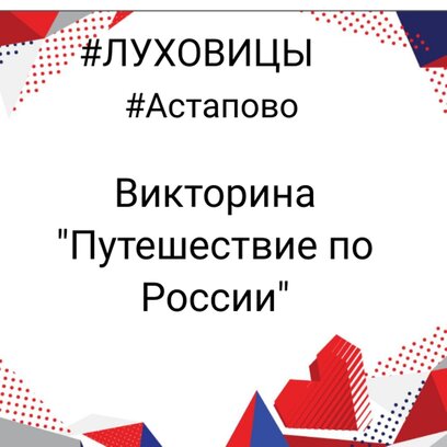 Молодёжный центр "Юнимакс"отдел Астаповский предлагает вам поучаствовать в викторине "Путешествие по России". Мы предлагаем игрокам отправиться в путешествие по городам, селам и деревням России. Игрокам предстоит пройти квест-игру, в котором будут различные вопросы и задания,кто наиболее эрудирован и обладает знаниями о нашей стране - России и будет победителем.