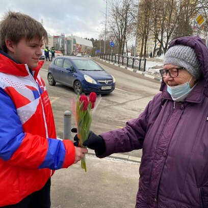 Сегодня Волонтеры Молодежного центра совместно с ОГИБДД МУ МВД России "Власиха" поздравили женщин с наступающим праздником 8-е марта.