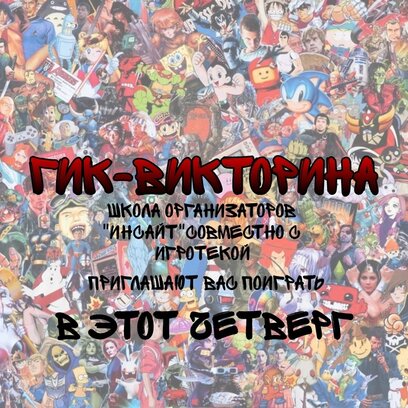 В этот четверг школа организаторов "Инсайт" совместно с Игротекой проведут для всех желающих Гик- викторину, а после мы поиграем в крутейшие настольные игры! 🔥Всех ждём в актовом зале на первом этаже в 16:00!
