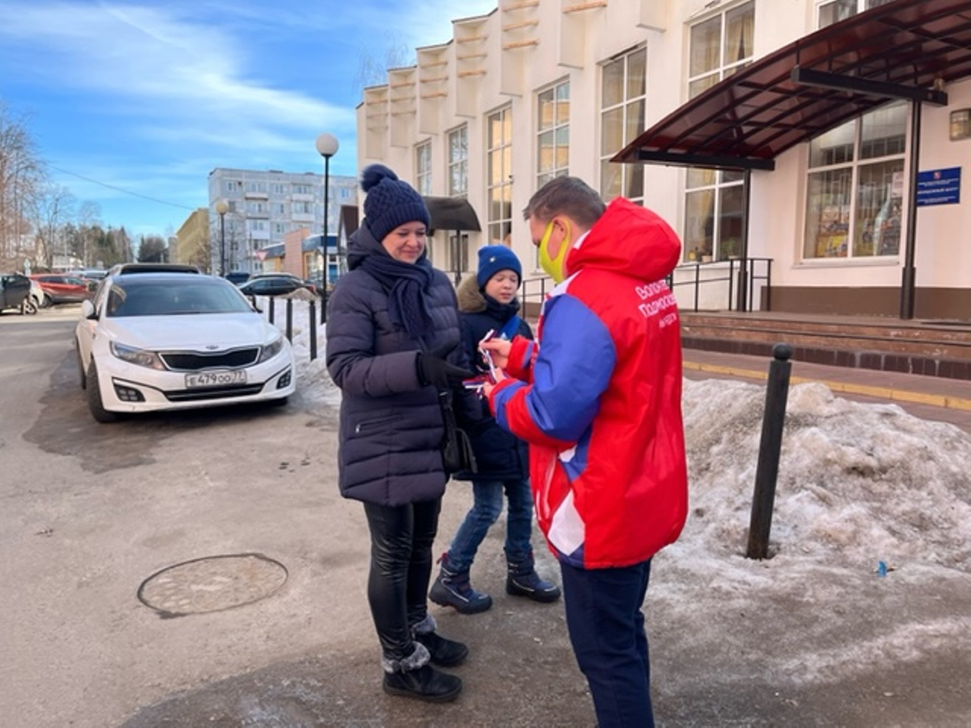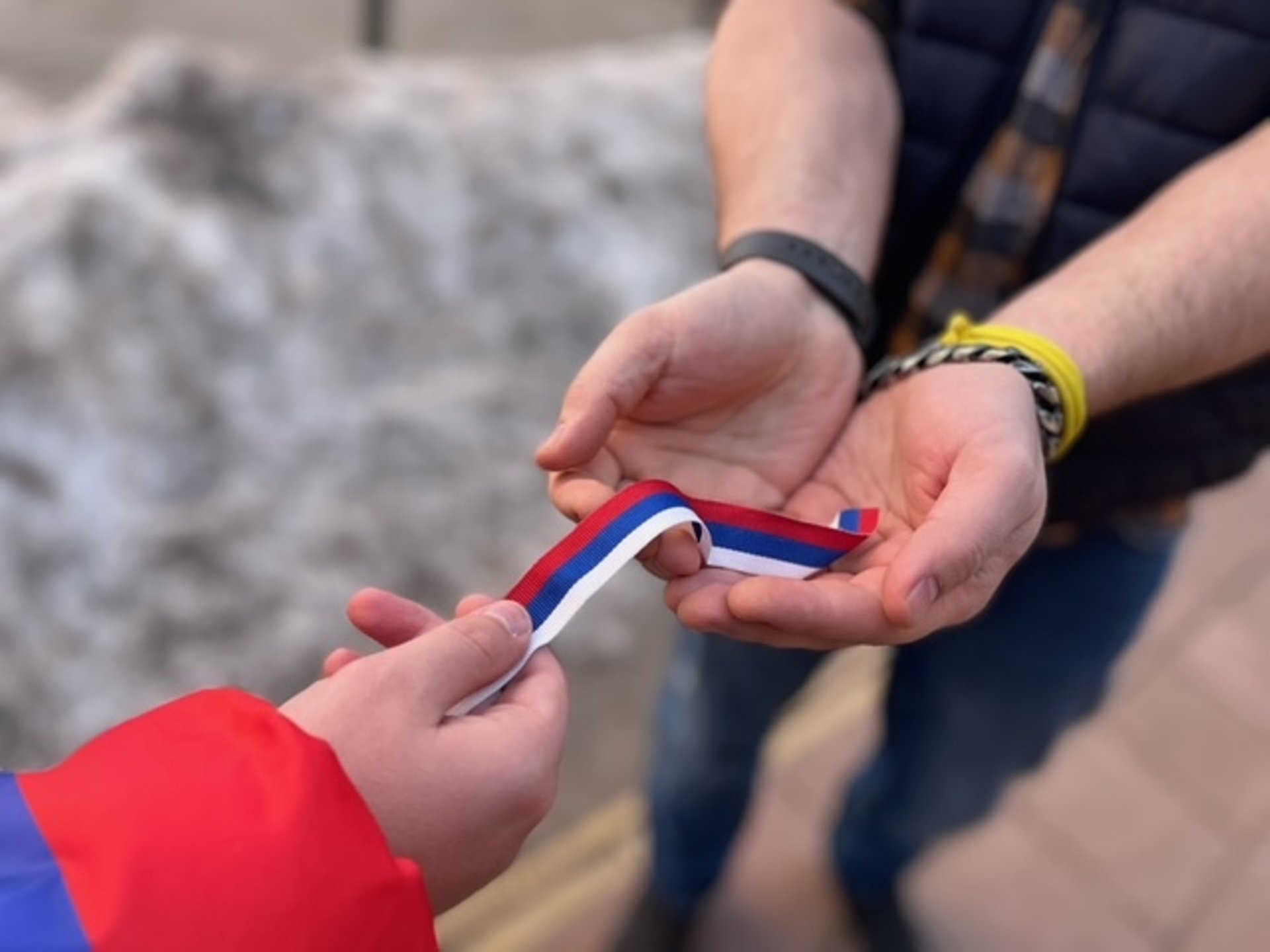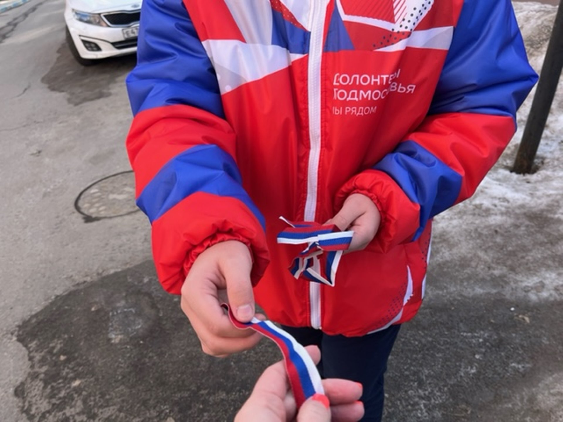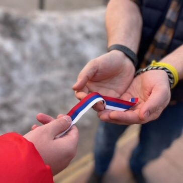В Краснознаменске сегодня прошла патриотическая акция «Российская ленточка», в рамках которой Волонтёры Молодёжного центра раздавали ленточки триколор жителям и гостям городского округа