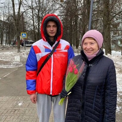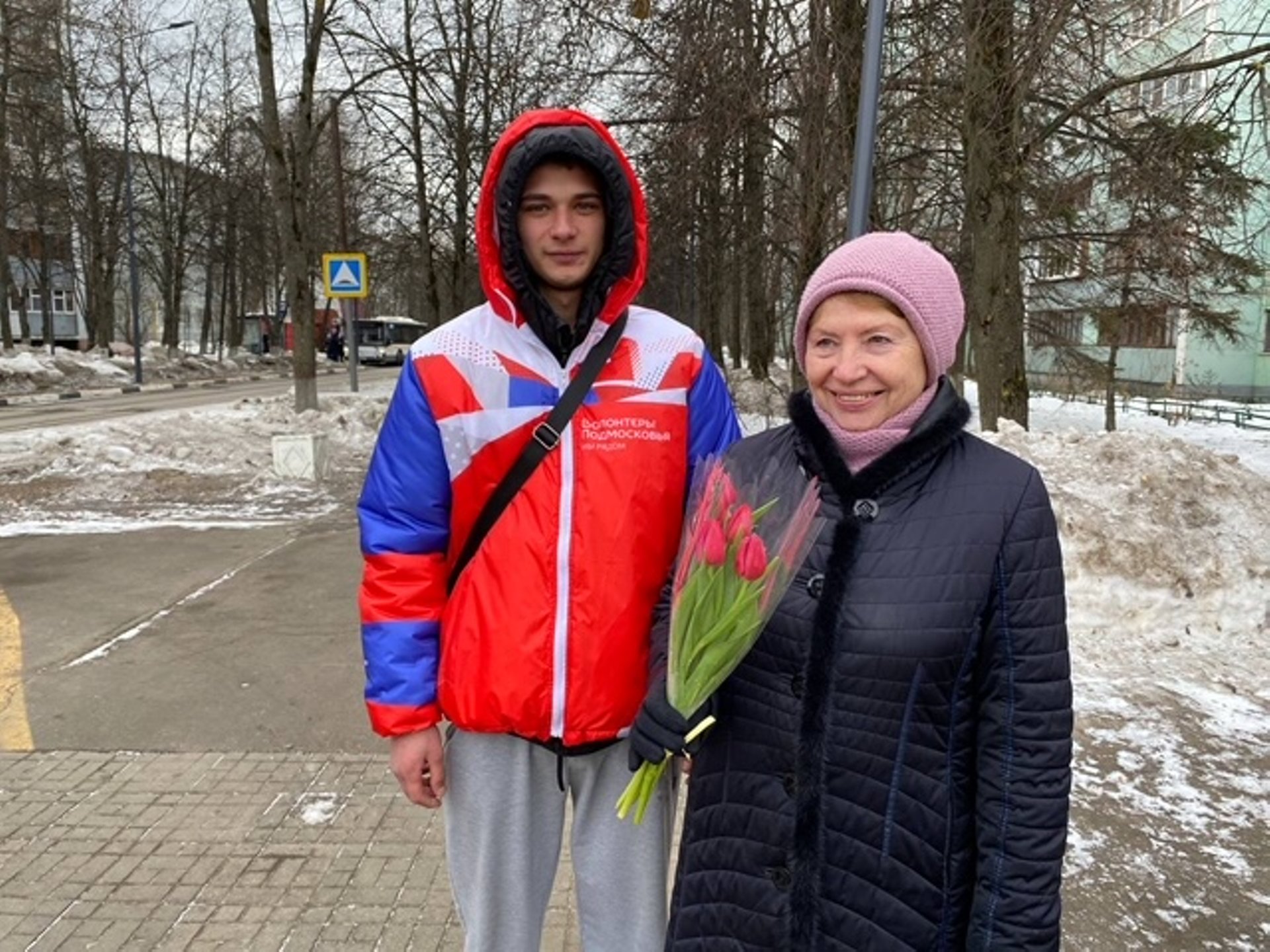 Краснознаменские волонтеры в предверии празника, на улицах города поздравляли женщин с праздником 8-е марта.