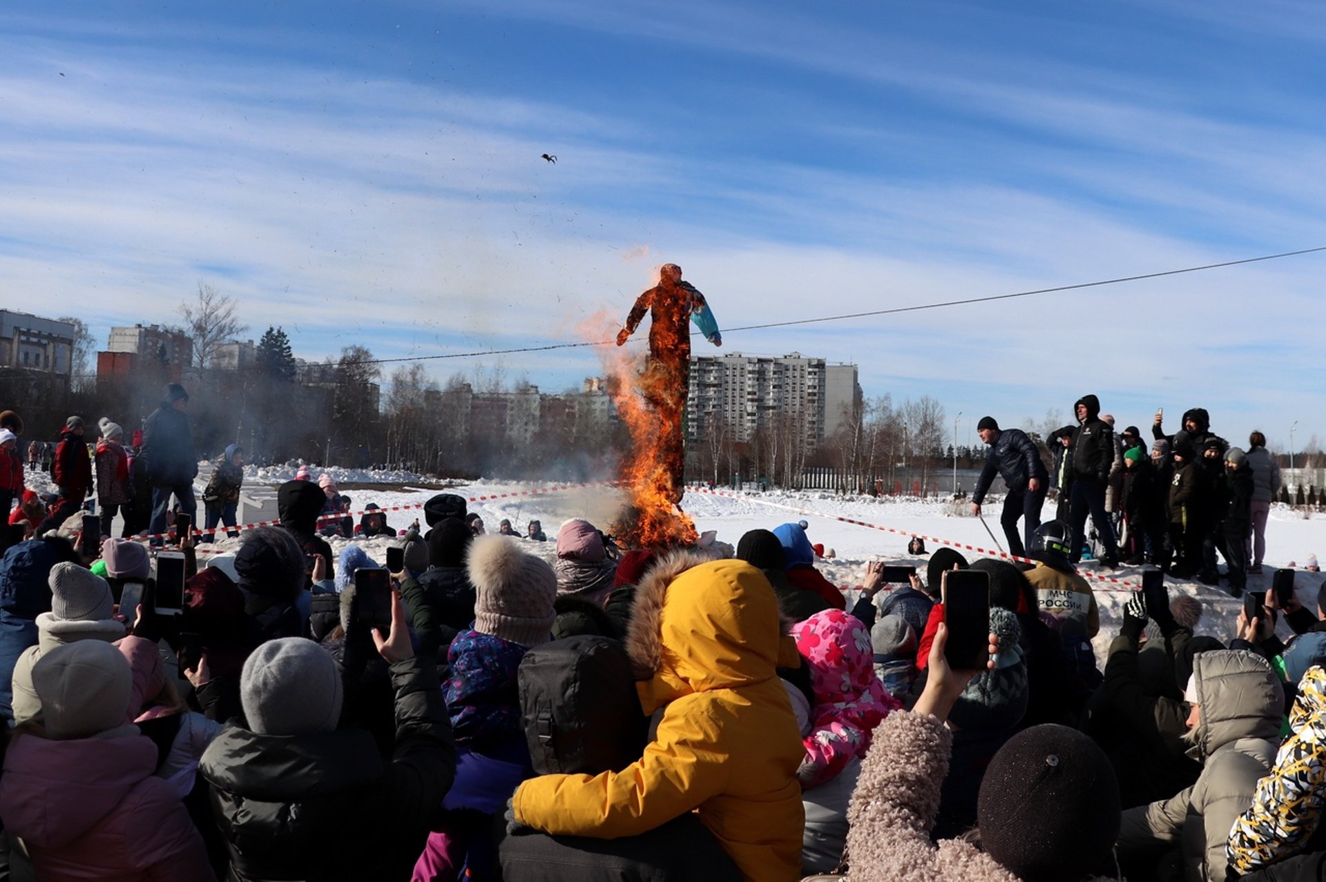 В полдень, по традиции, жители сожгли чучело Масленицы и поприветствовали весну. Многие краснознаменцы решили запечатлеть этот момент на камеры своих смартфонов и поделиться радостным событием в социальных сетях.
