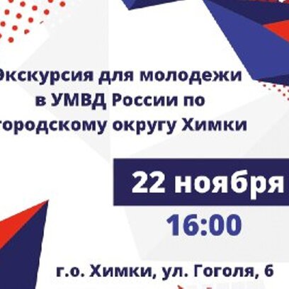 22 ноября в 16:00 пройдет экскурсия для молодежи в УМВД России по городскому округу Химки.