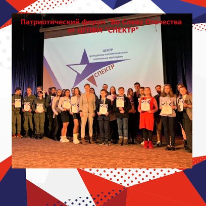 Ежегодный молодежный патриотический форум "Во Славу Отечеству", организатором которого является МУ "ЦГПВМ "Спектр", пройдет 5 декабря в ЦДТ "Родник" г.Ликино-Дулево.