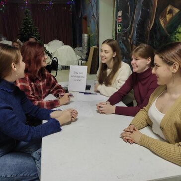 Волонтеры помогают в организации мероприятия.