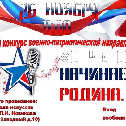 Открытый конкурс военно-патриотической направленности "С чего начинается Родина..." - творческое состязание участников в номинациях: вокал, хореография, художественное слово.