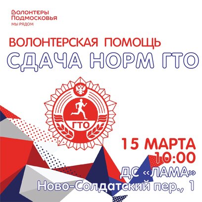 Необходима помощь в организации и проведении норм сдачи ГТО. Регистрация участников, помощь на локациях, маршрутизация. Хочешь помочь, жми на кнопку "Участвовать".