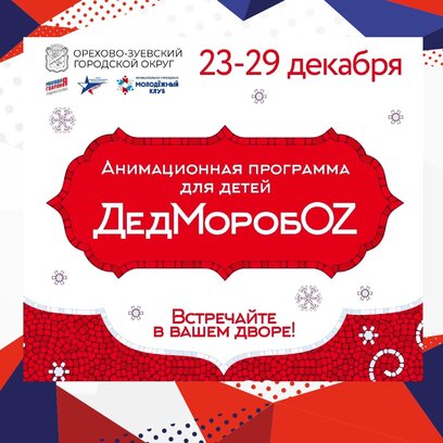 С 23 декабря стартуеут ставшая традиционной анимационная программа для детей Орехово-Зуевского городского округа "ДЕДМОРОБОZ". Приглашаем всех желающих принять участие в акции.