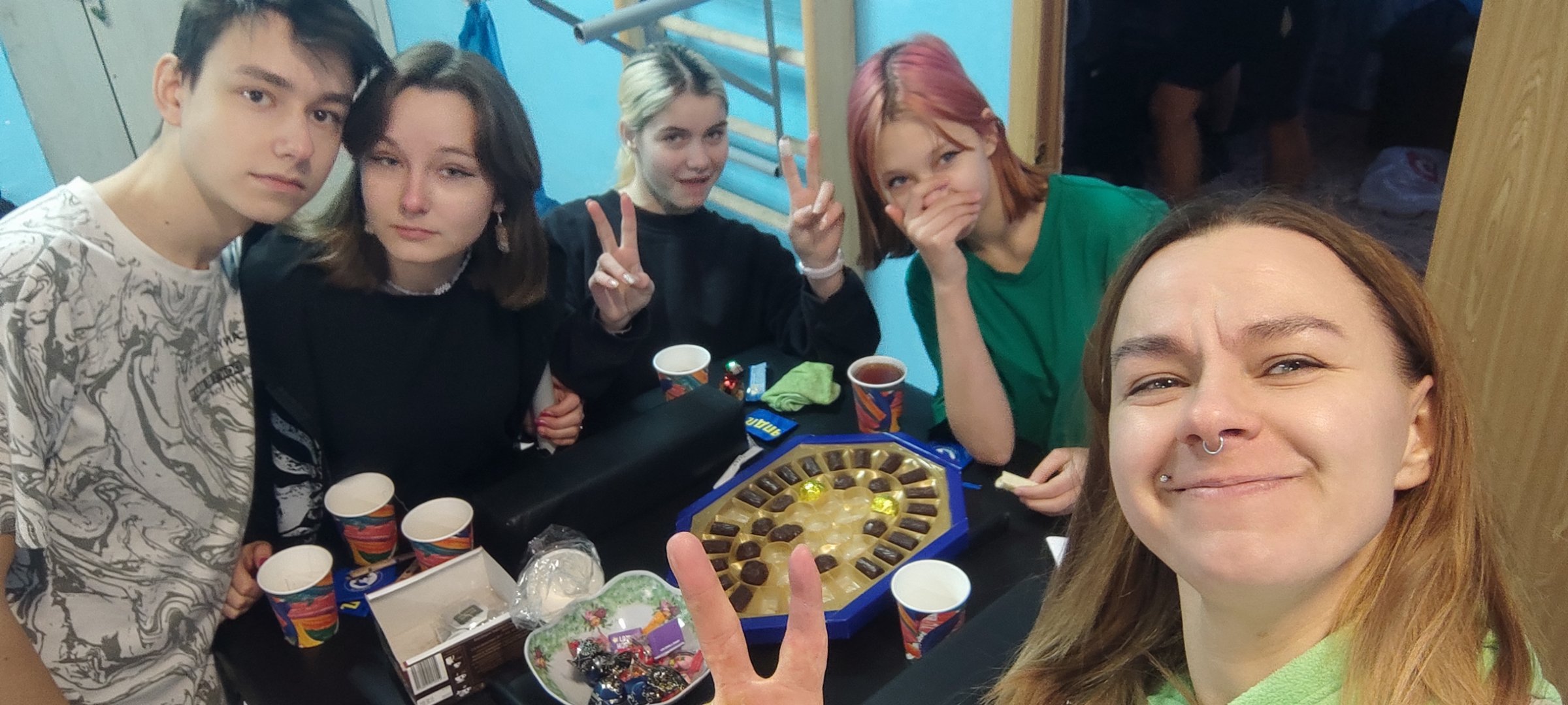 Чай , сладости, хорошее настроение , бенгальские огни и хлопушки. Всё это для Вас приготовили Волонтёры МО в праздник Рождество.