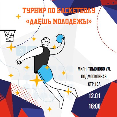12 января в клубе «Салют» пройдёт турнир по баскетболу. Для участия приглашается молодёжь от 14 до 17 лет.