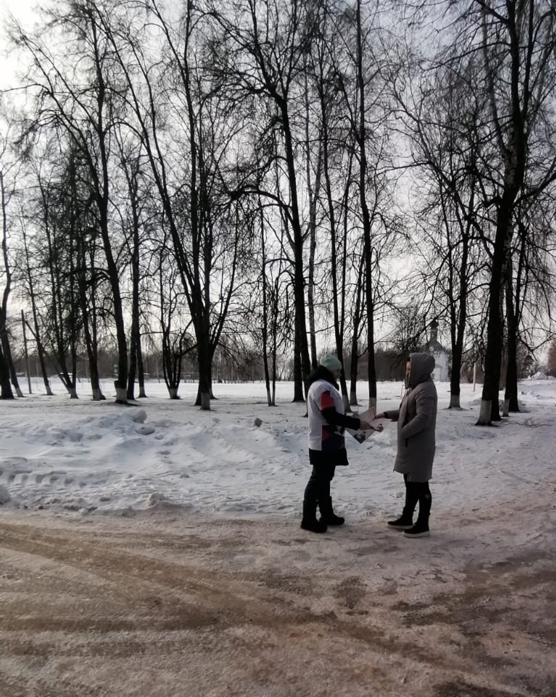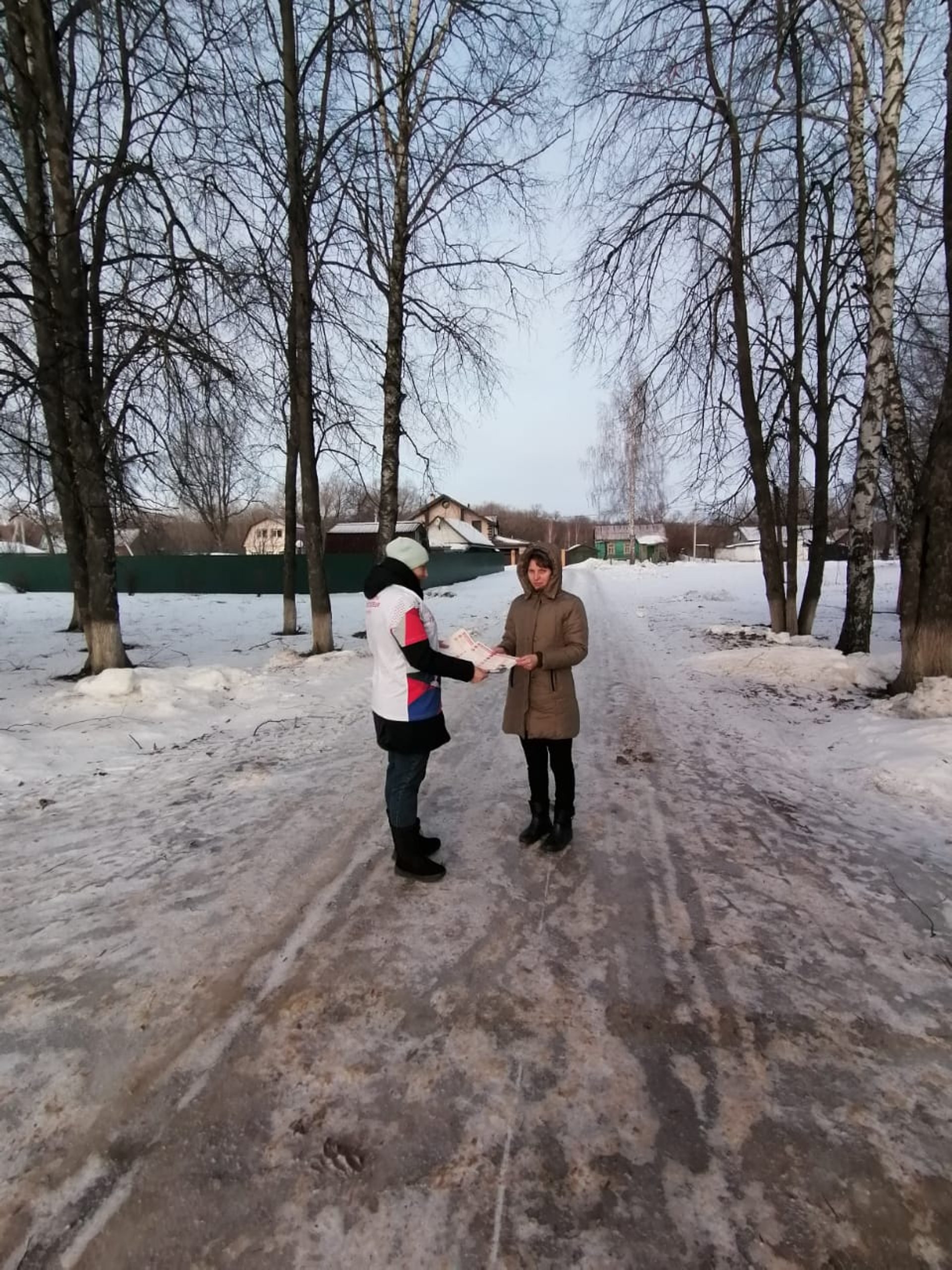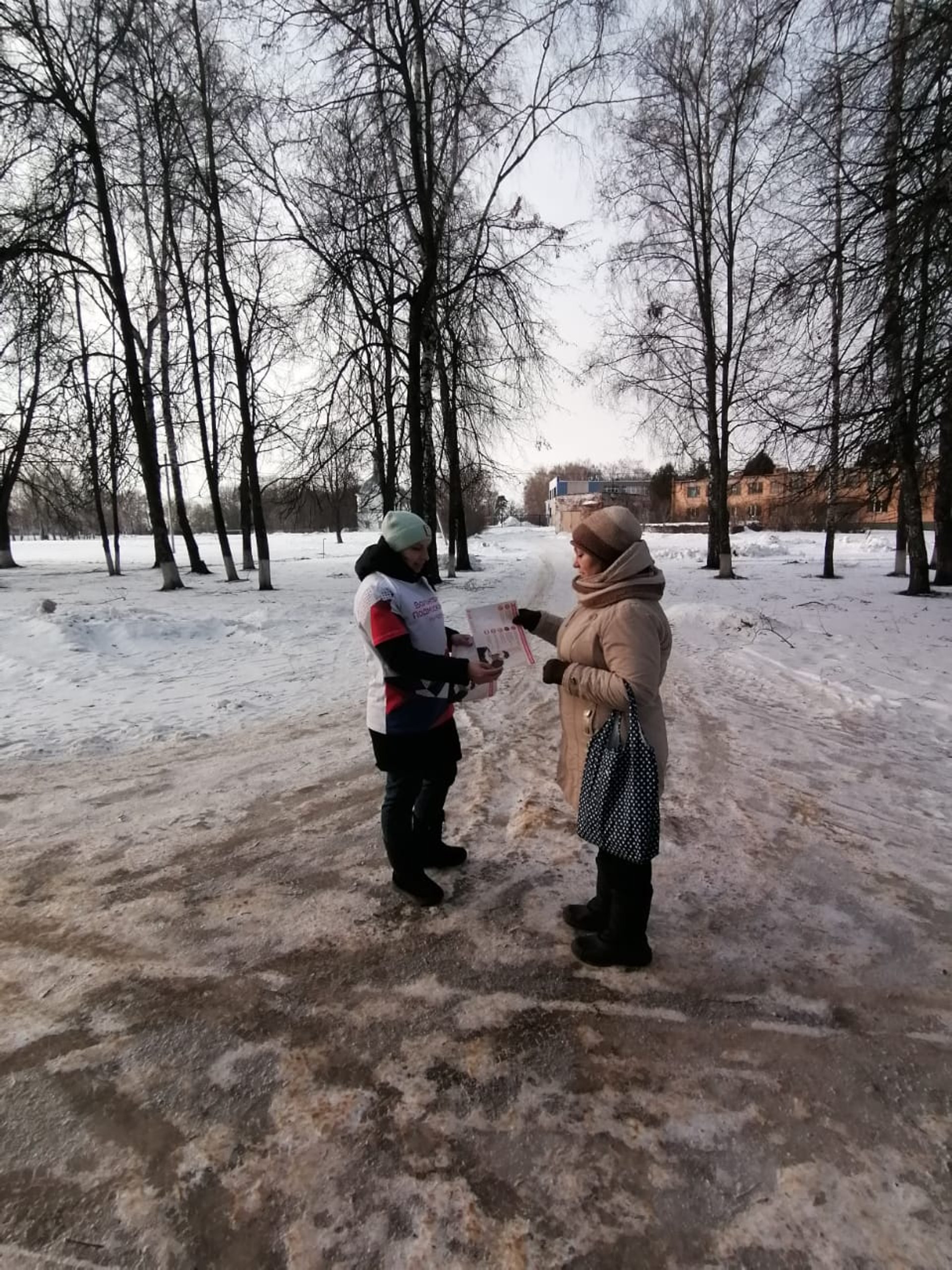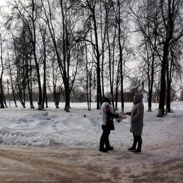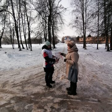 Волонтёры, раздают листовки и рассказывают жителям о правилах использования обогревательных приборов.