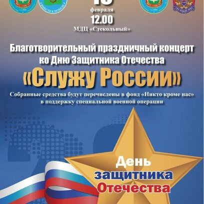 В воскресенье в МЦ "СТЕКОЛЬНЫЙ" пройдёт благотворительный концерт "СЛУЖУ РОССИИ" ко Дню защитника Отечества.