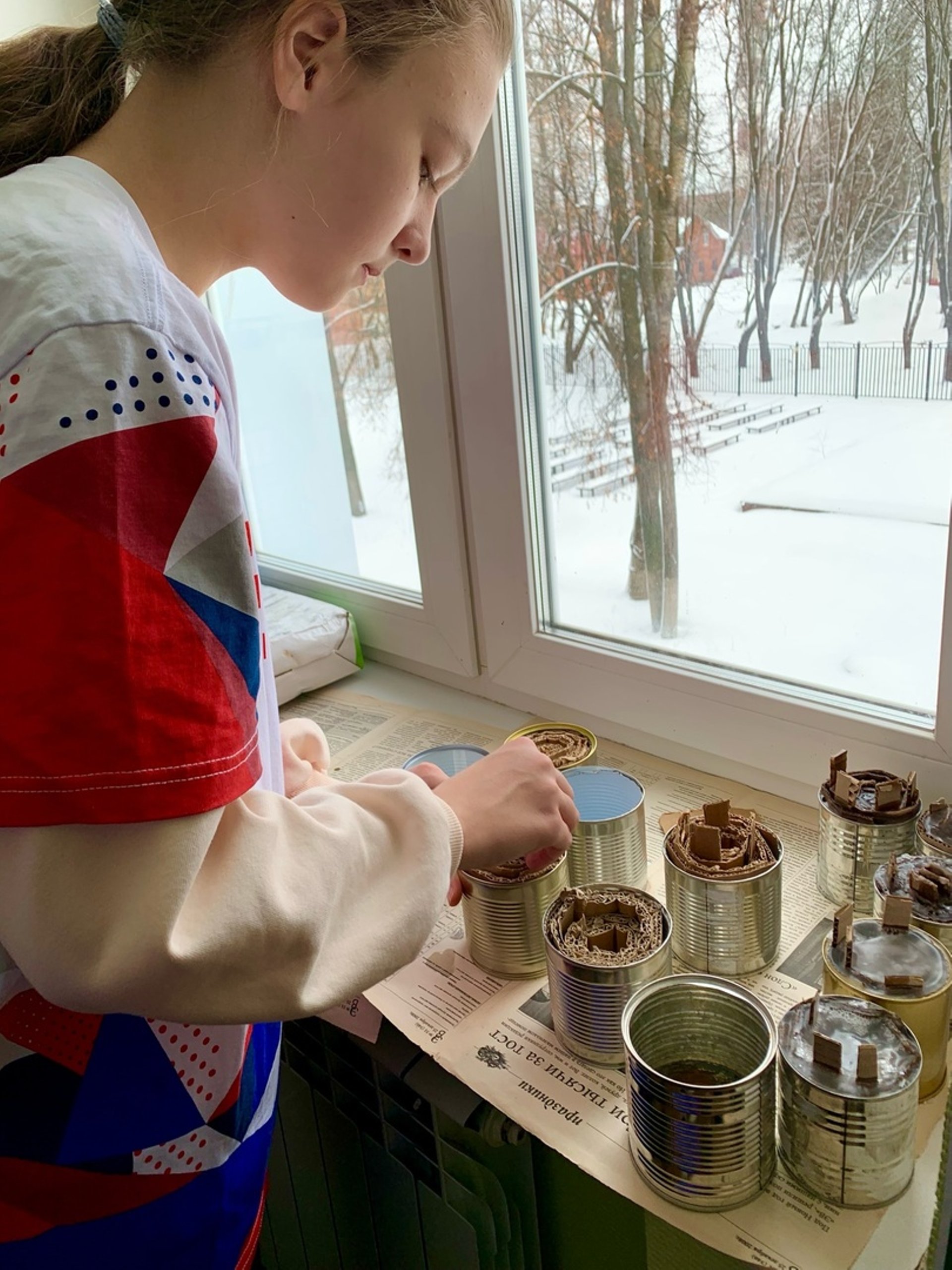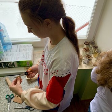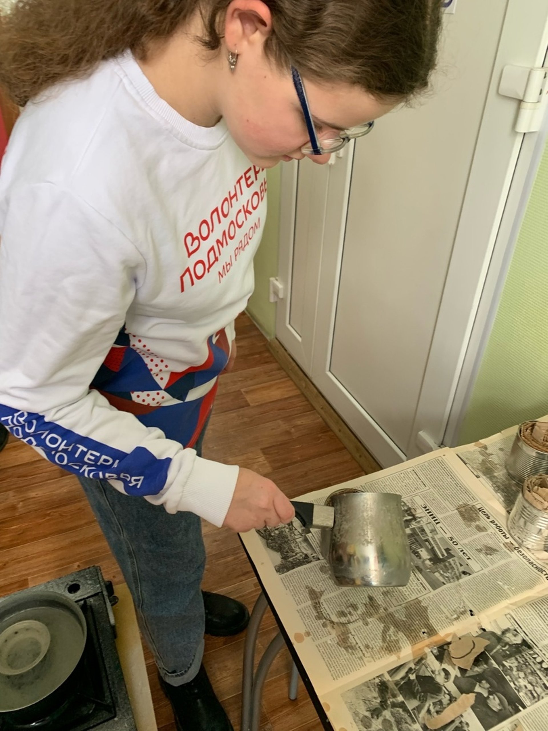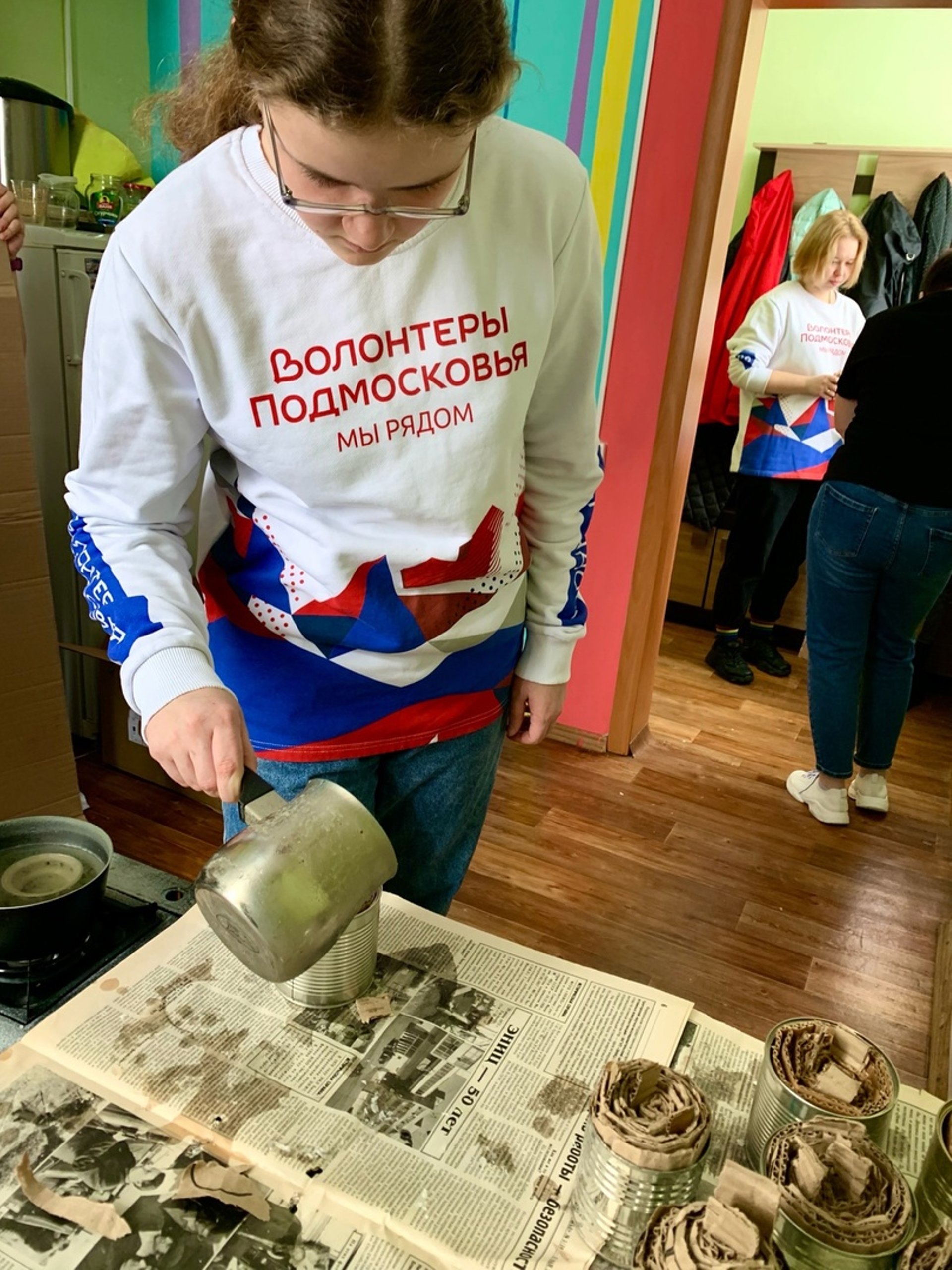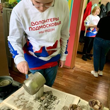 Волонтеры помогают заливать блиндажные свечи.