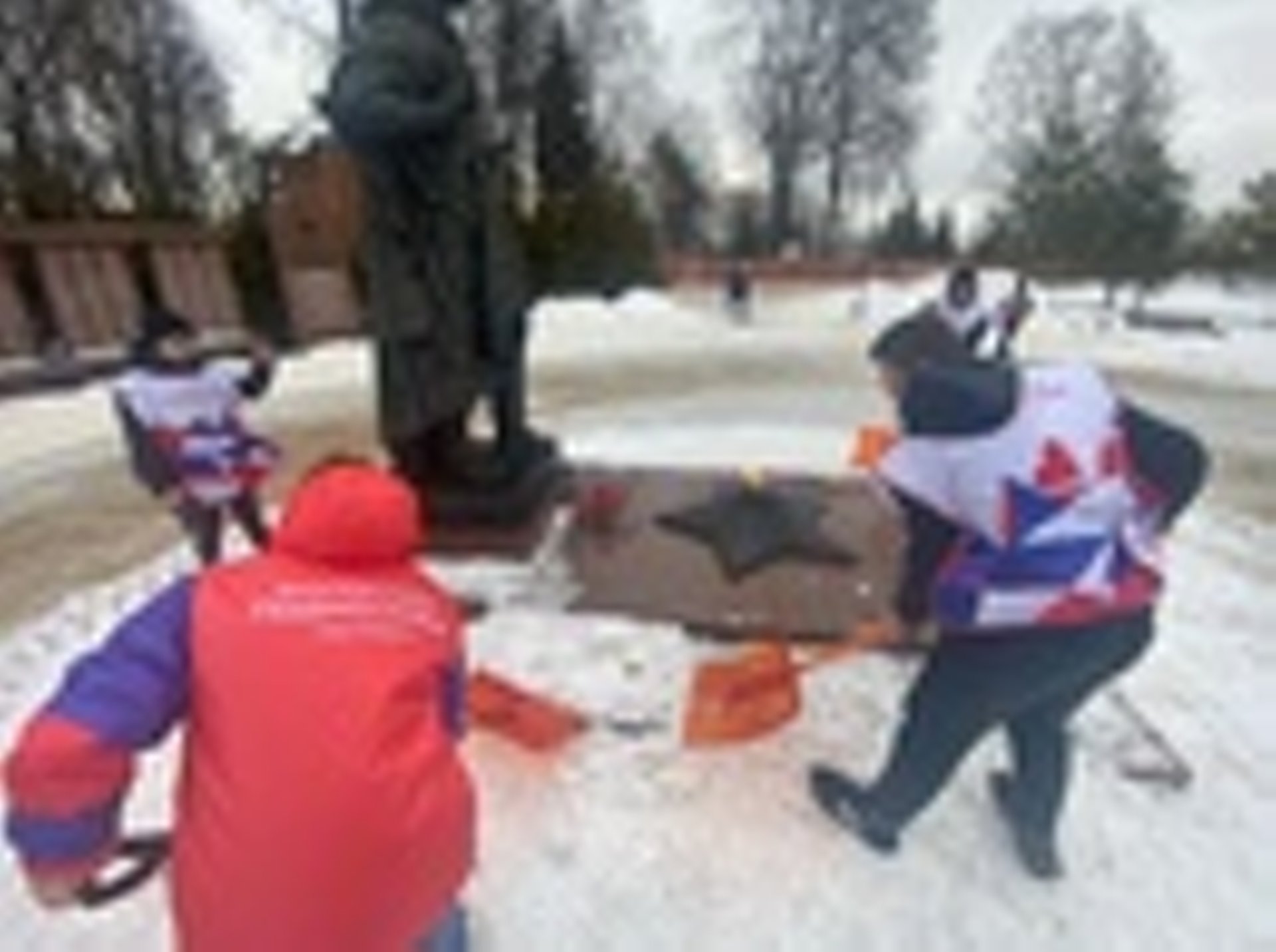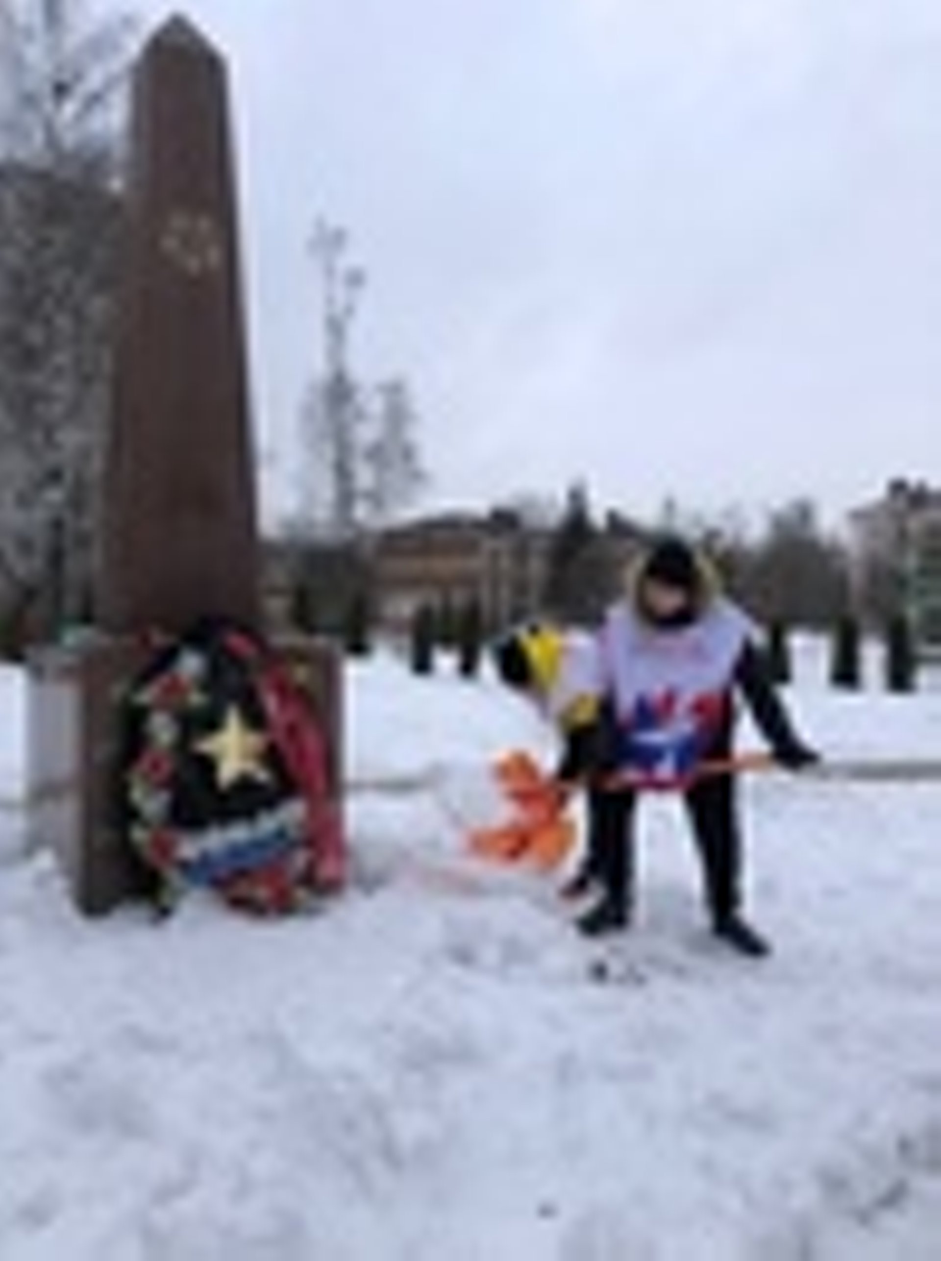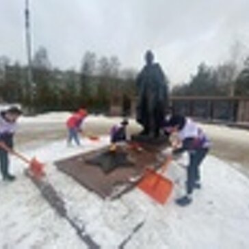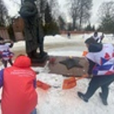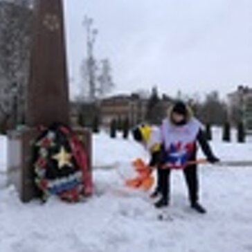 В предверии Дня Защитника Отечества , волонтеры Лосино-Петровского убрали снег у памятника.